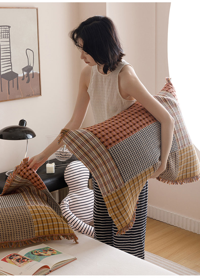 (总)麻依 2025新款全棉四层纱布流苏毯旅行披肩休闲毛巾被,格律,绵绵向上,南笙,千禧,如初,森林宝贝,首逅,童话可可,维也纳,夏洛特,星空森林