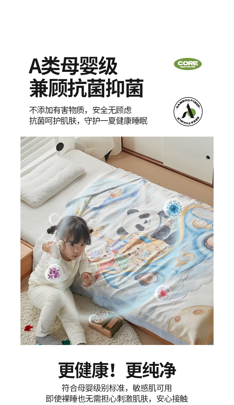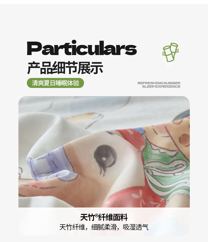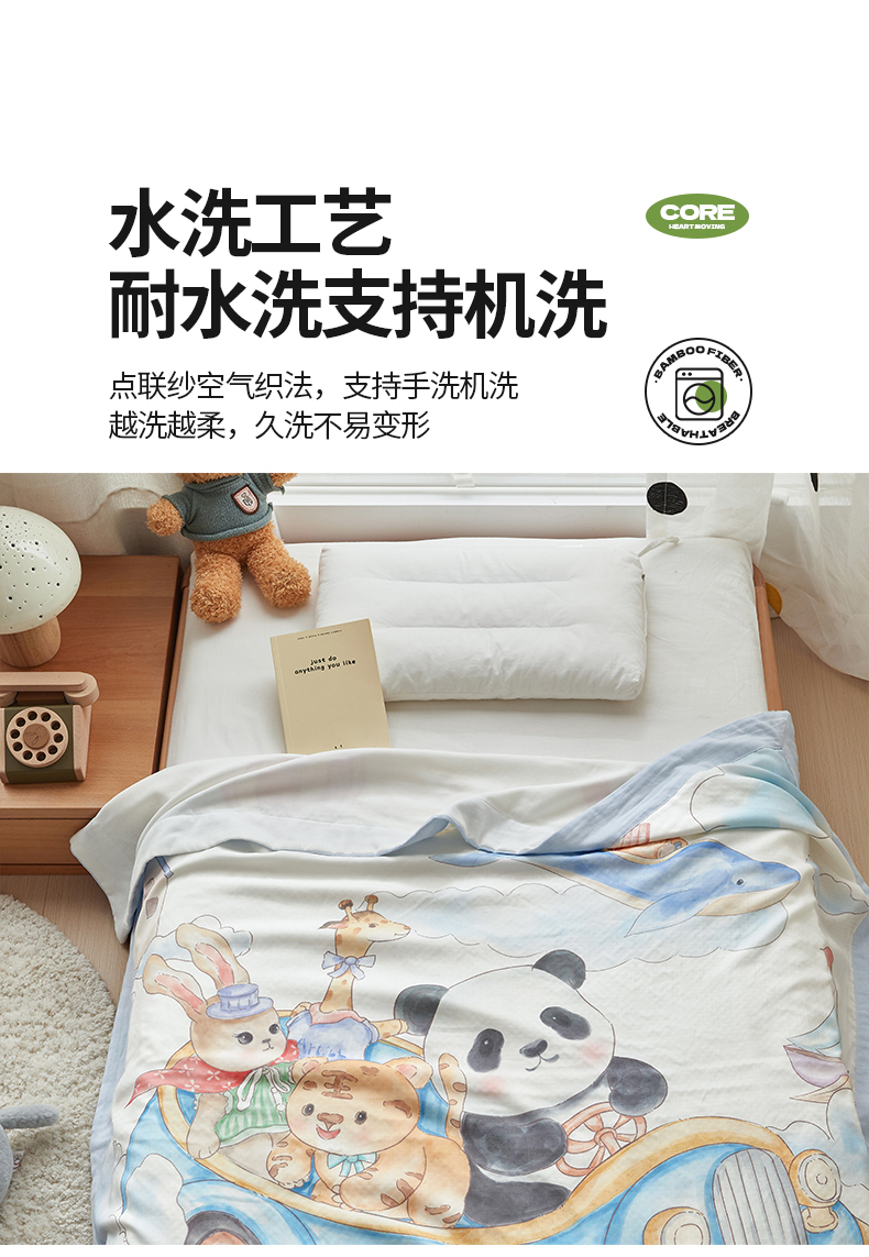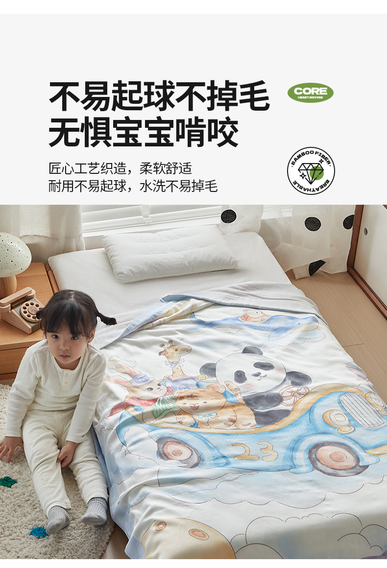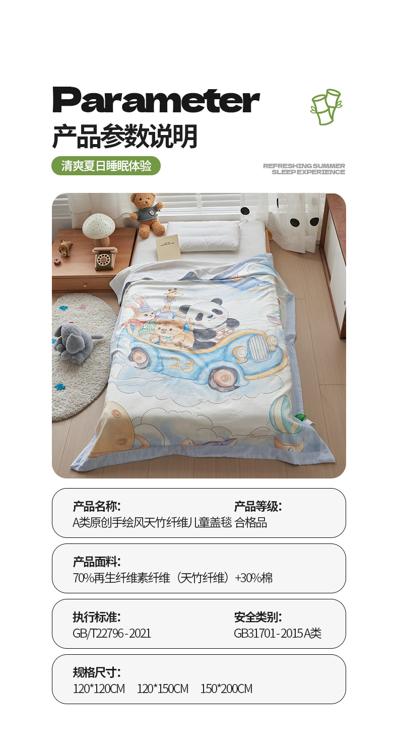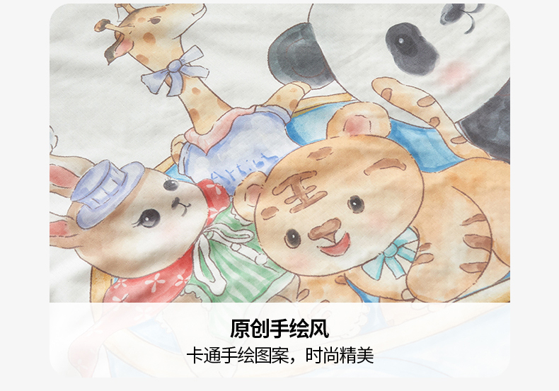 商品名称:荷马之梦 2025新款天竹系列—A类原创手绘风大版天竹纤维四层纱儿童盖毯 跑跑小熊猫