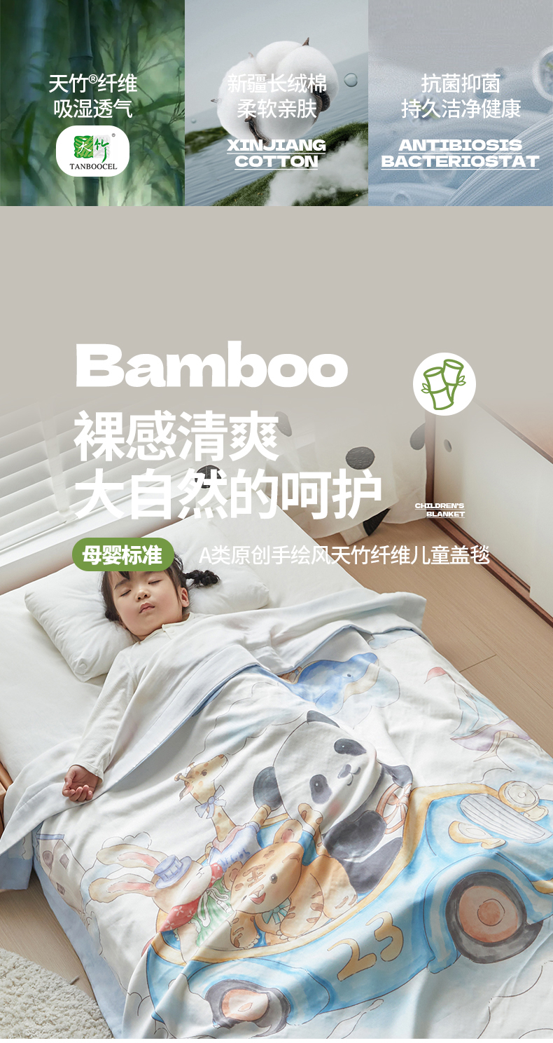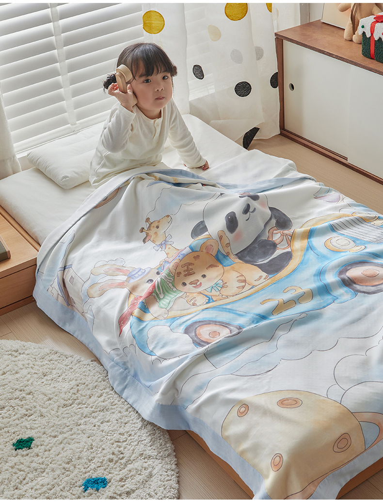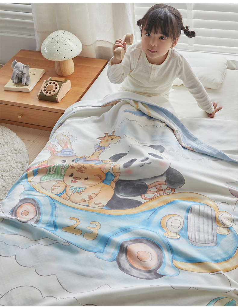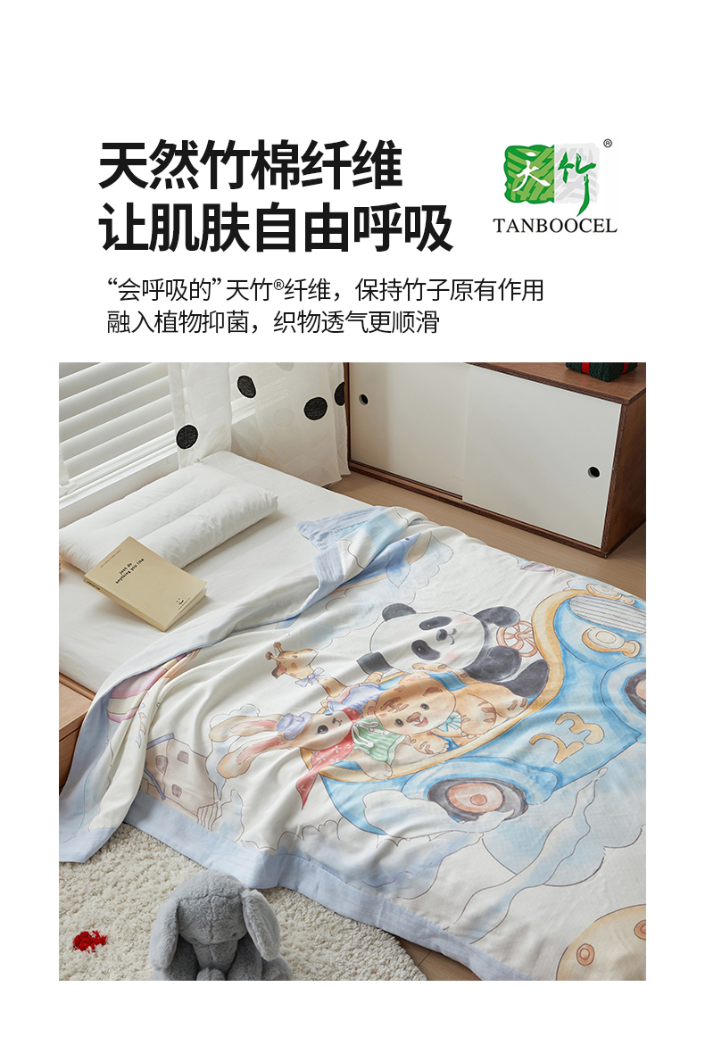 荷马之梦 2025新款天竹系列—A类原创手绘风大版天竹纤维四层纱儿童盖毯 跑跑小熊猫