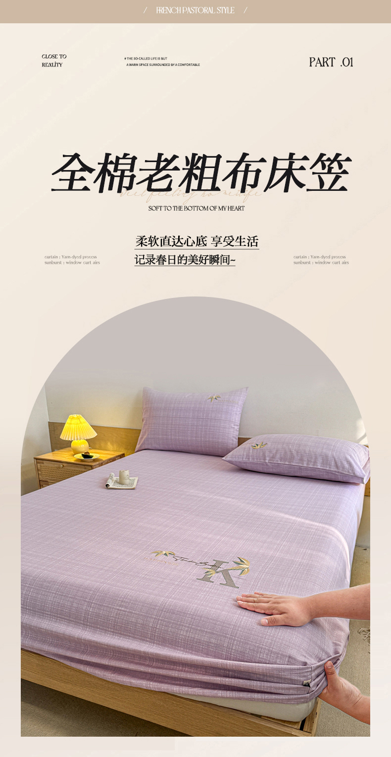 • 91家纺网 家纺一手货源 找家纺 布柔 2025新款100%全棉纯棉老粗布绣花印花凉席单品床笠 小熊床笠