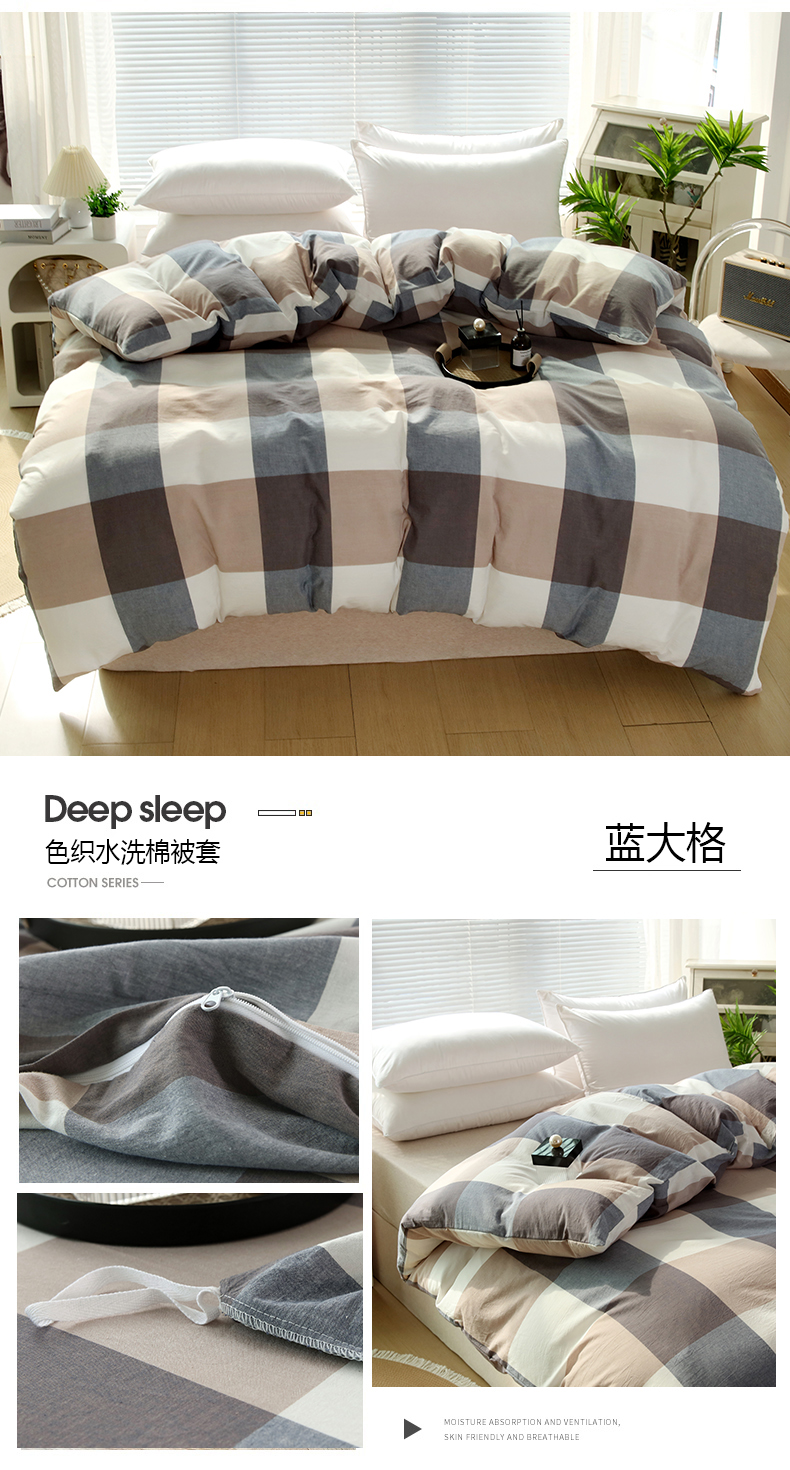商品名称:恋之语 2025新款全棉纯棉色织被套单品单被套被套单件 蓝大格