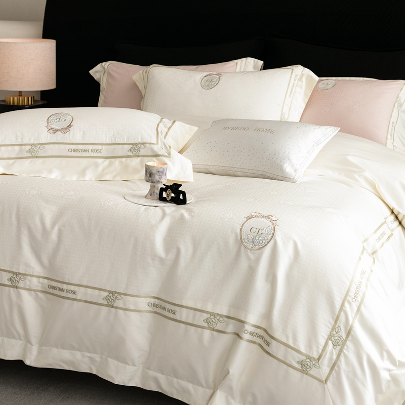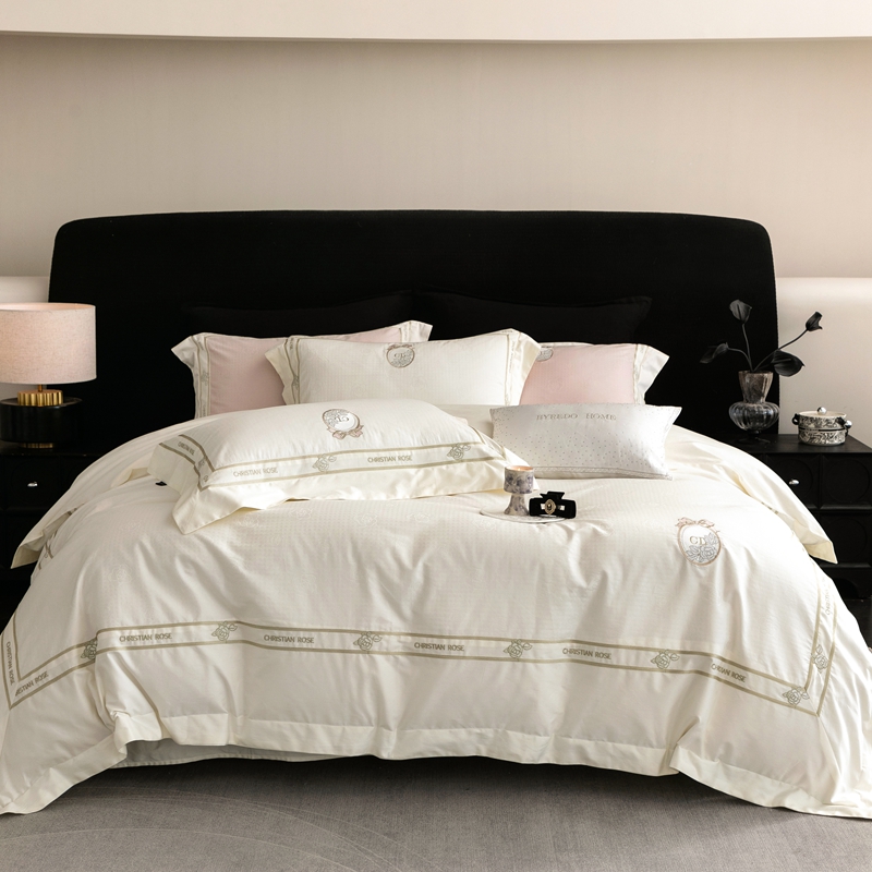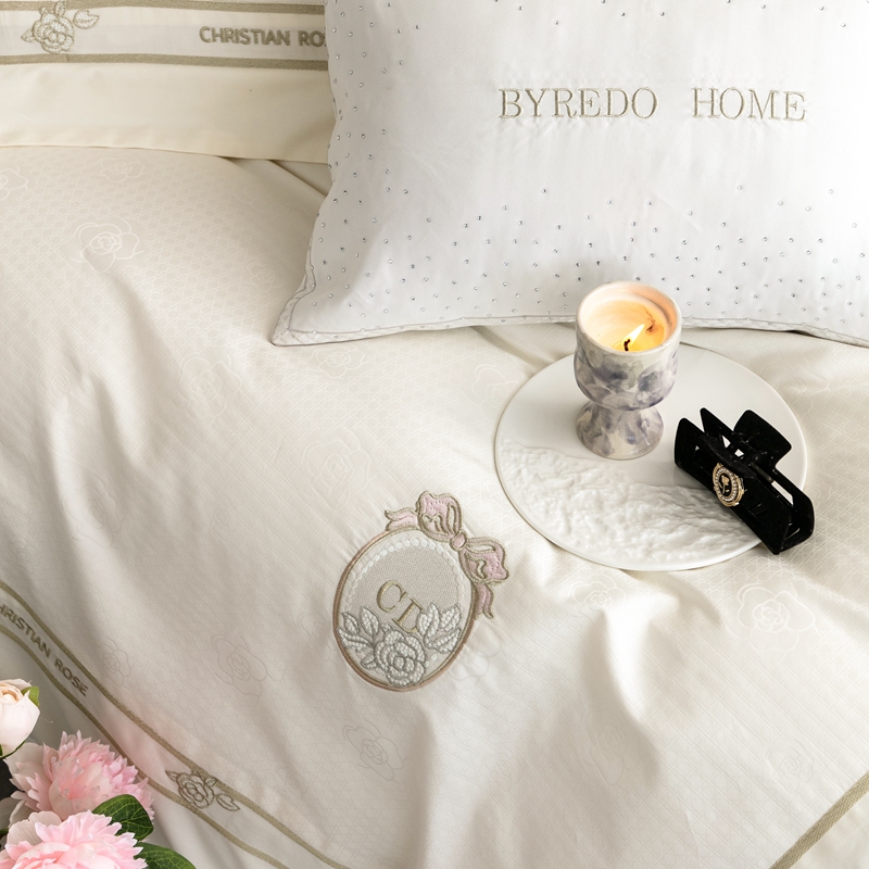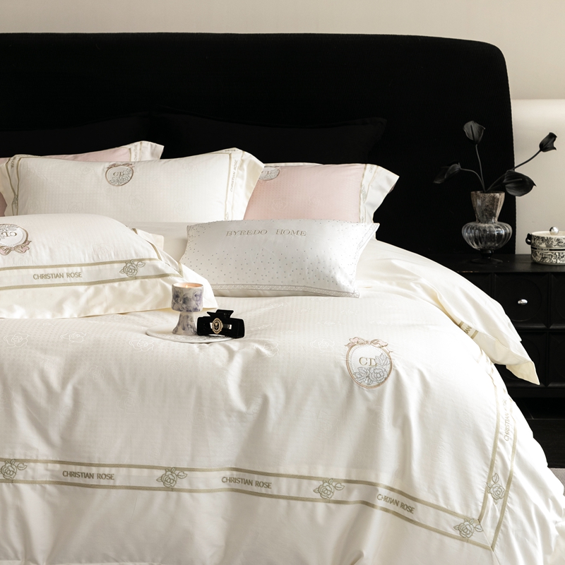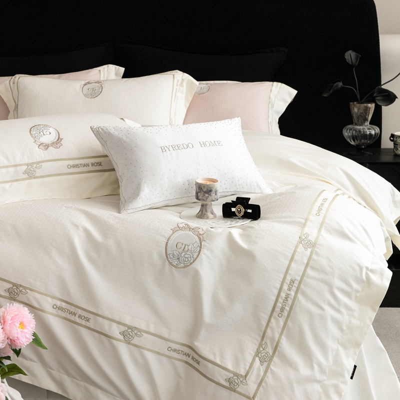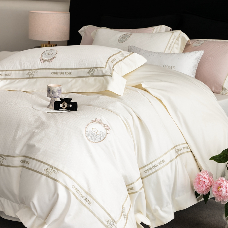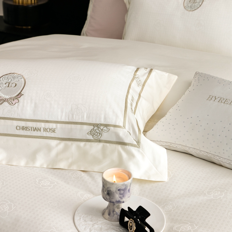 馨蕊家居 2025春夏新品高定典藏提花系列刺绣四件套--露丝 露丝-月光白