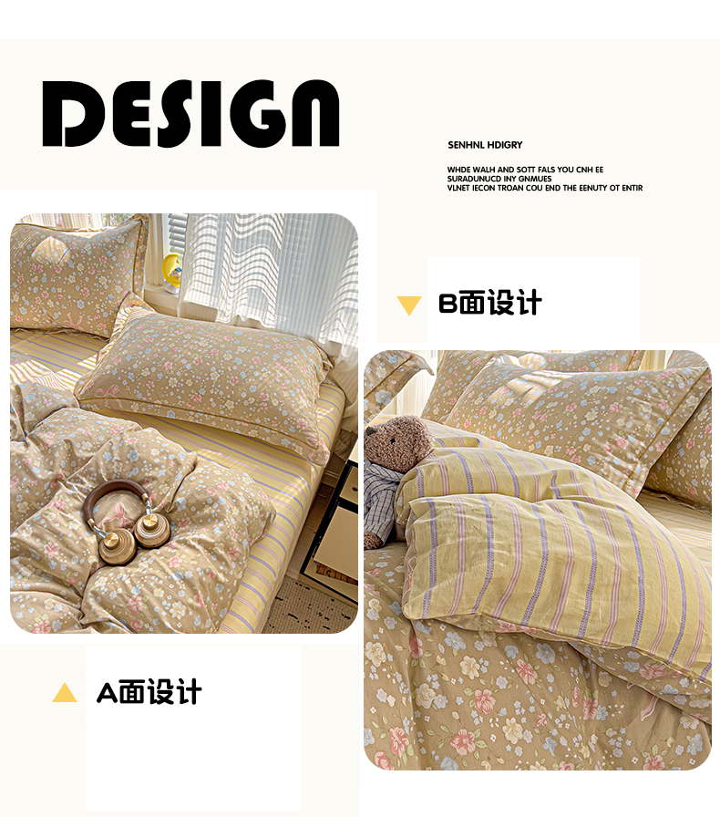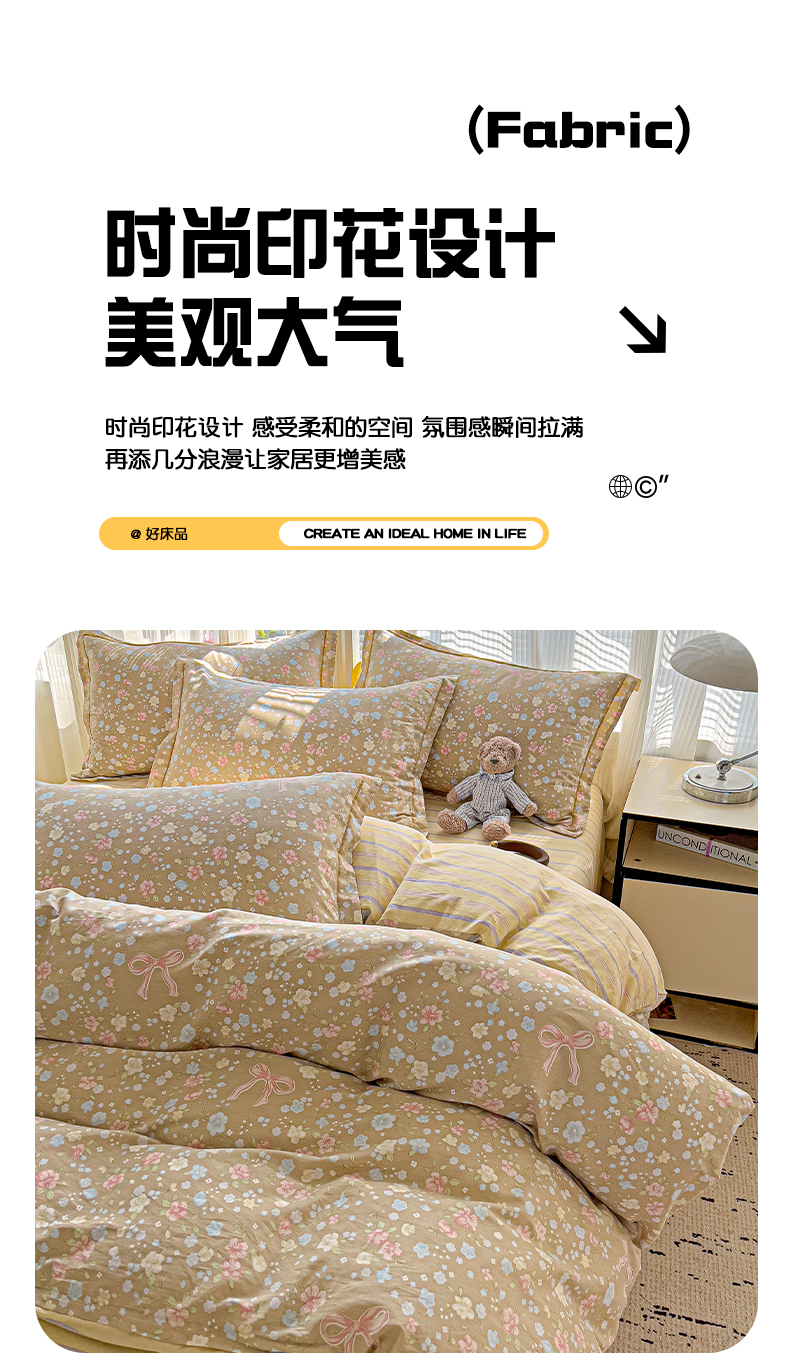 暖芯优选 2025新款小清新印花全棉磨毛四件套 芬迪,芬迪