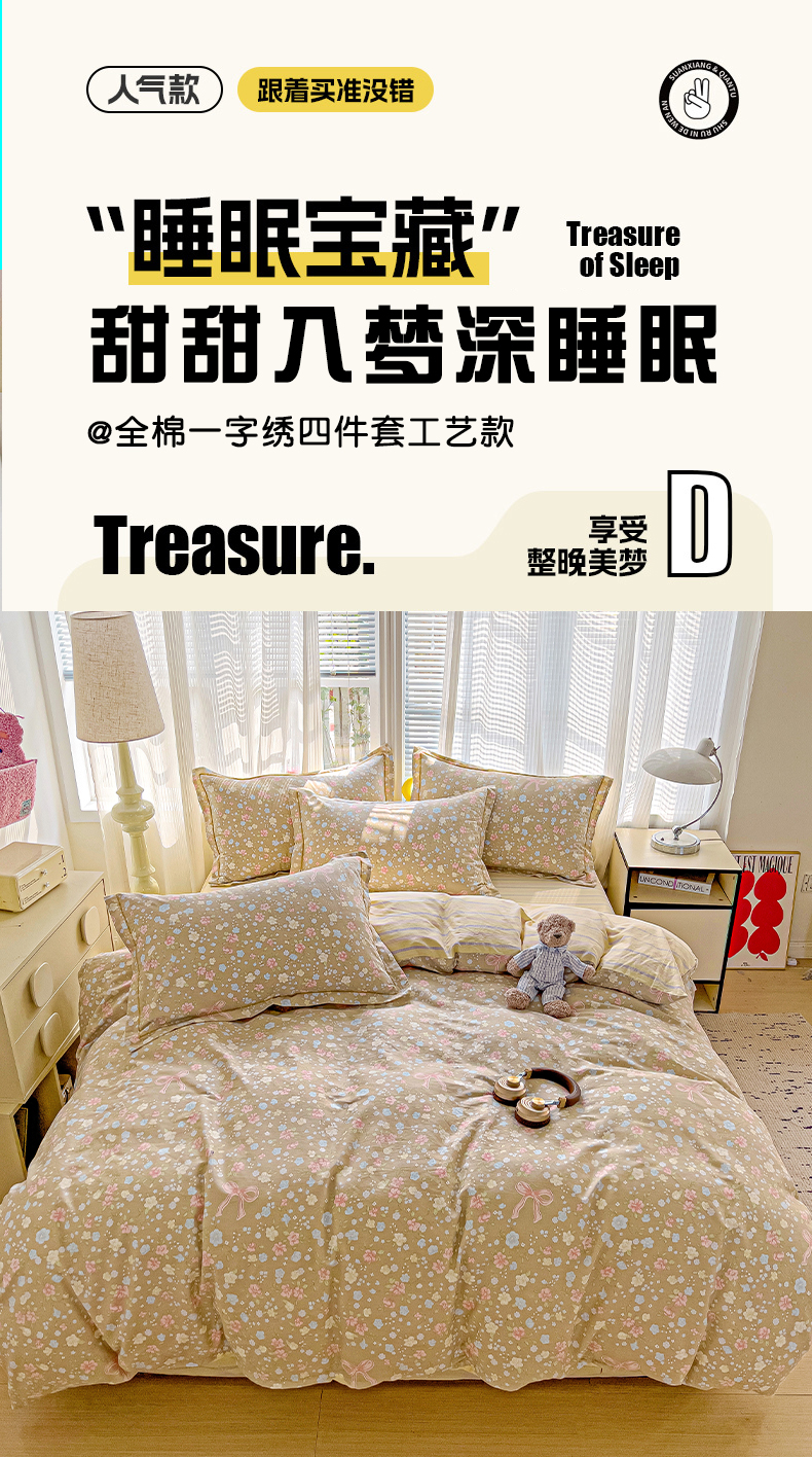 商品名称:暖芯优选 2025新款全棉纯棉一字绣四件套系列 春野星漫