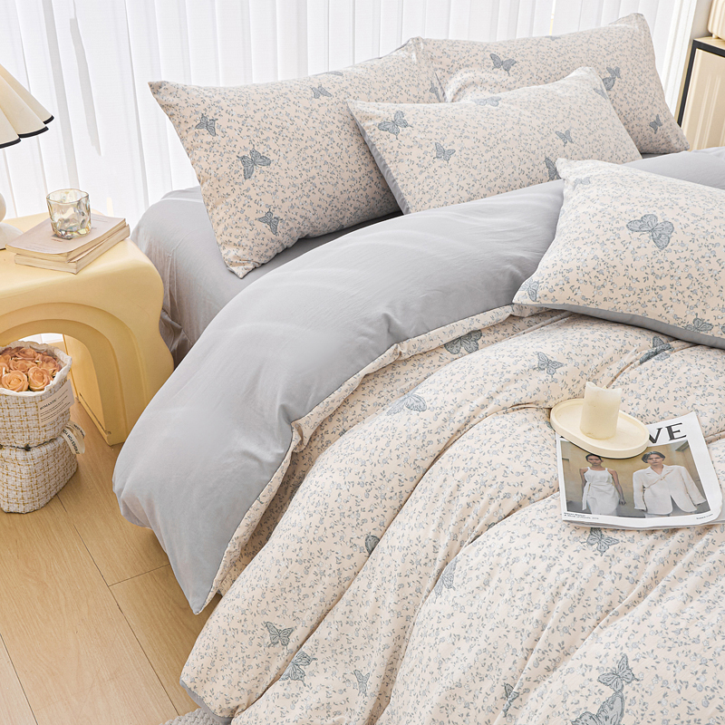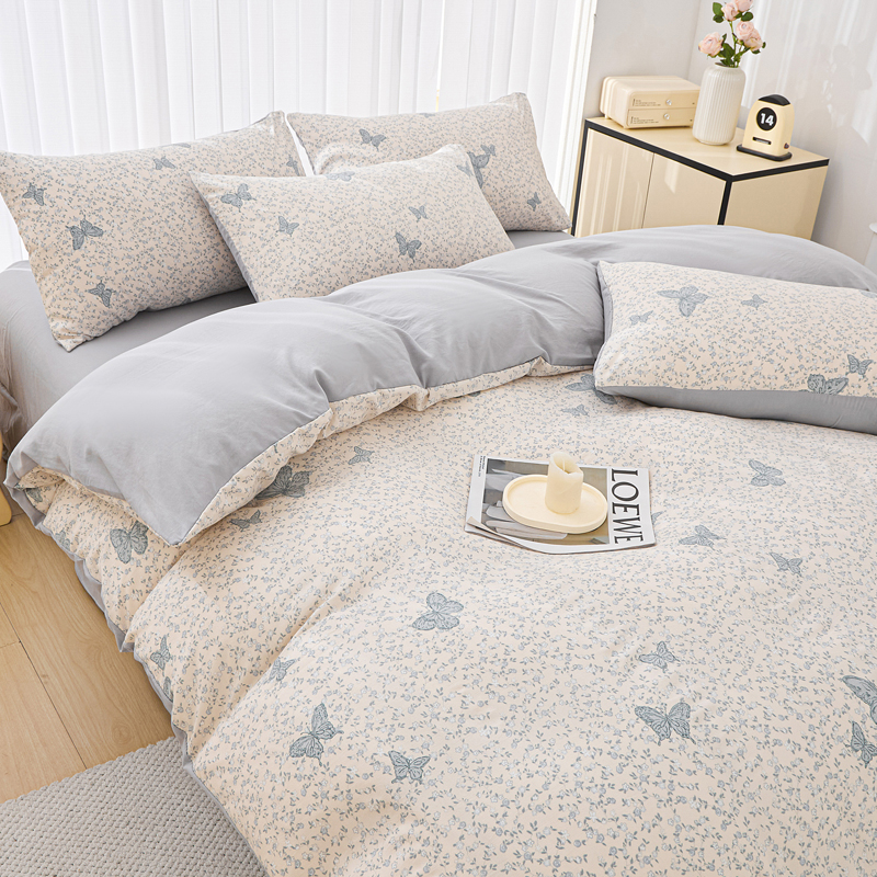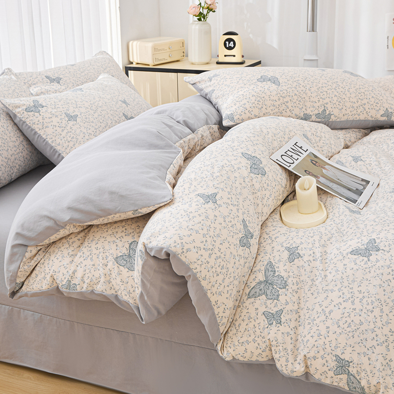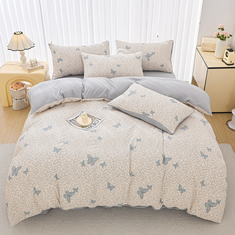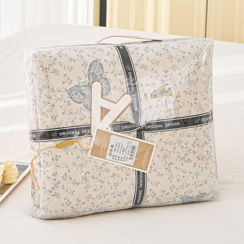 商品名称:蕾诺家纺 2025新款直播新款A类有氧提花云纱棉圆角吊边工艺四件套学生三件套 翩翩起舞