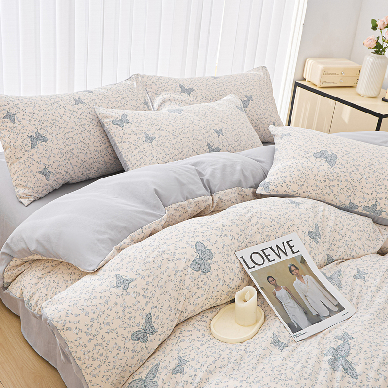蕾诺家纺 2025新款直播新款A类有氧提花云纱棉圆角吊边工艺四件套学生三件套 翩翩起舞