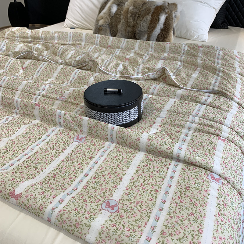 (总)奈萝家纺 奈萝2025新款全棉13372法式花边纯棉夏被春秋被,波点小兔,粉色草莓,格子草莓,格子雏菊,灰色玫瑰,玫瑰花园,浅黛粉,浅黛灰,蔷薇花粉
