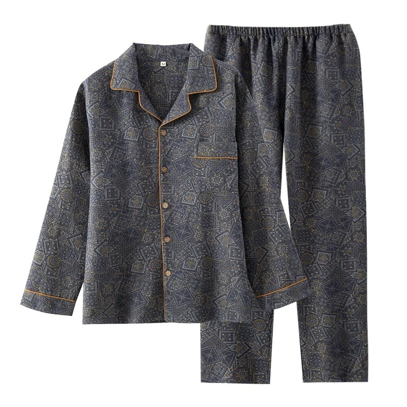 商品名称:洛兰沙家居馆【只代发】【只代发】2025新款男款休闲色织纯棉双层纱布睡衣夏季薄款长袖短袖宽松家居服外穿 长袖C004