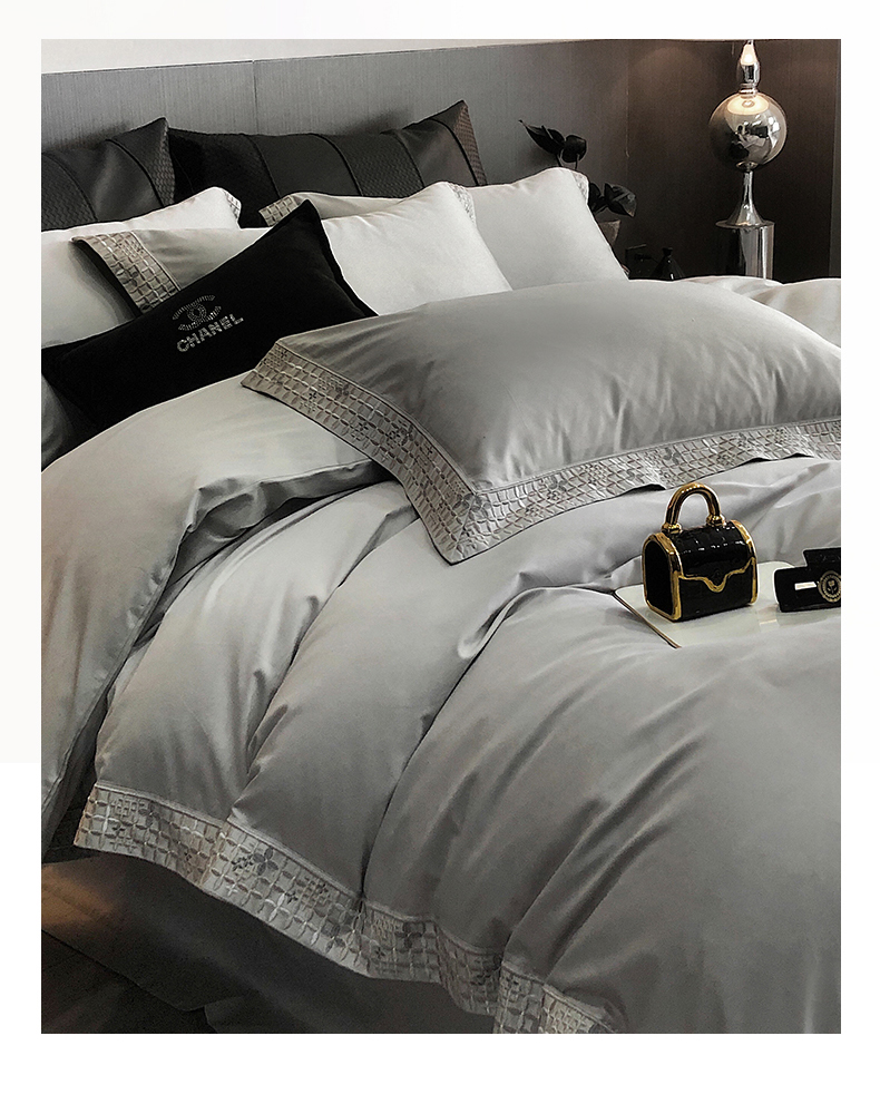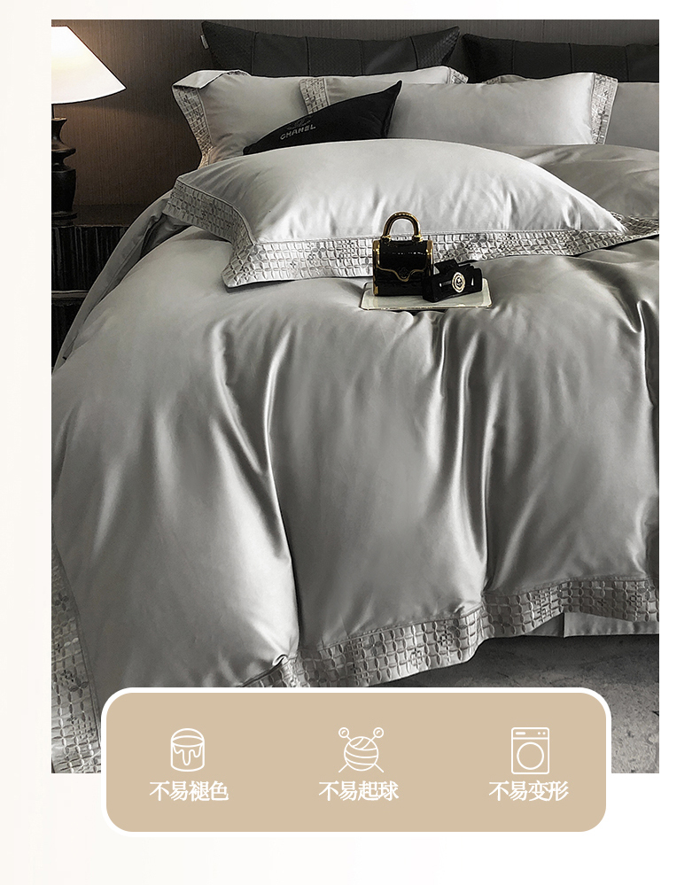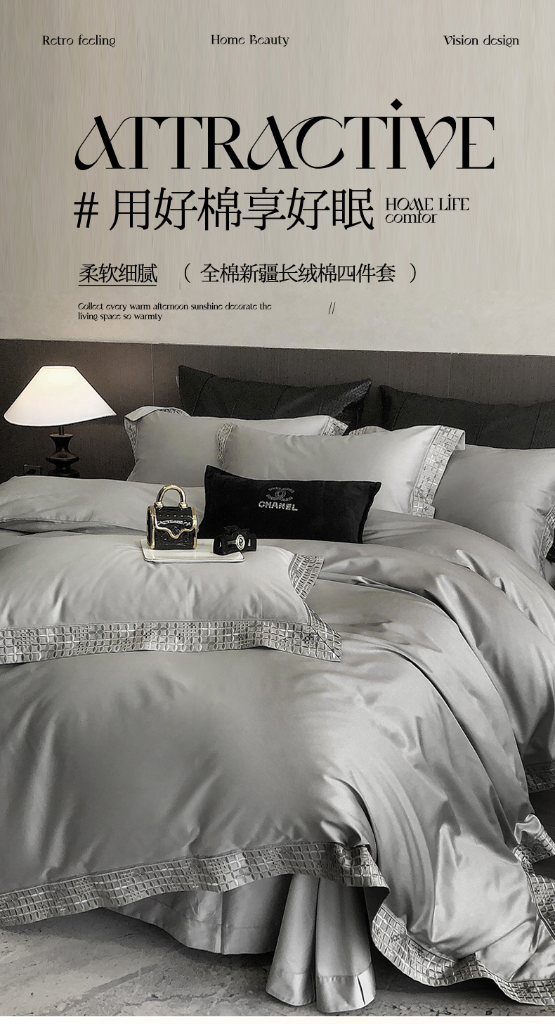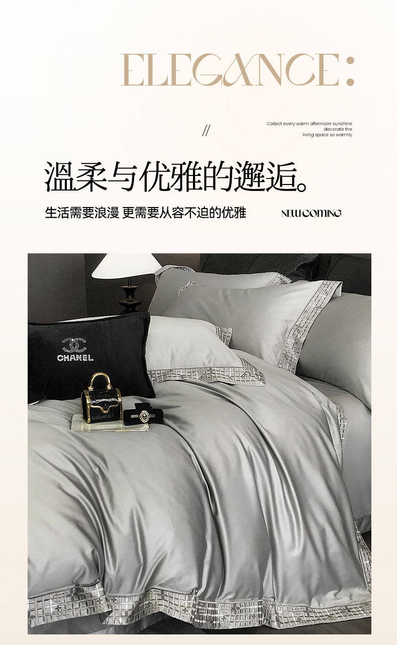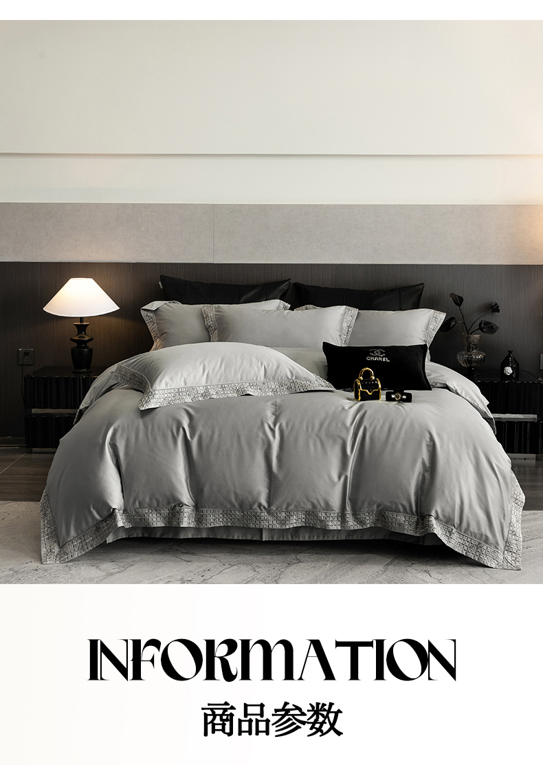 商品名称:保罗圣迪奥 2025新款简约款全棉长绒棉四件套—星阑 星阑-绅士灰