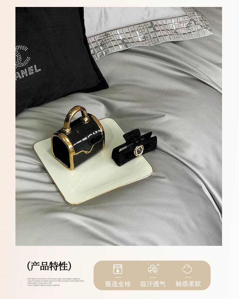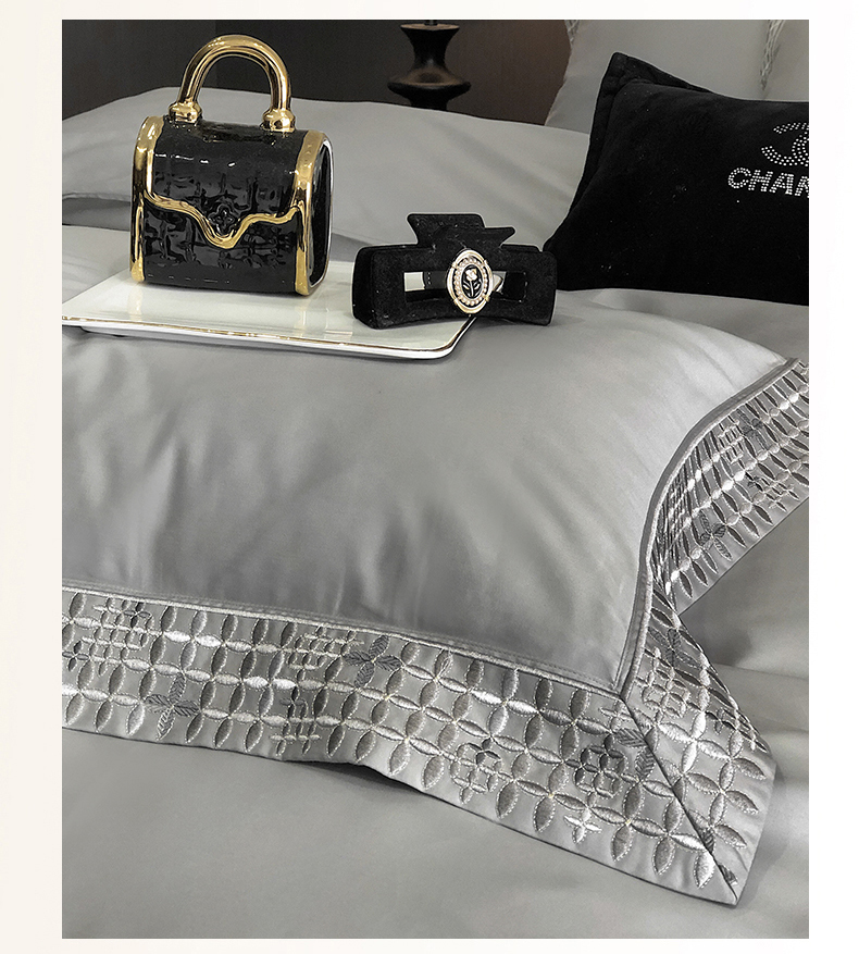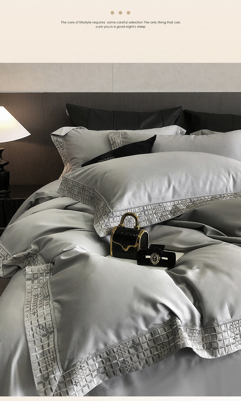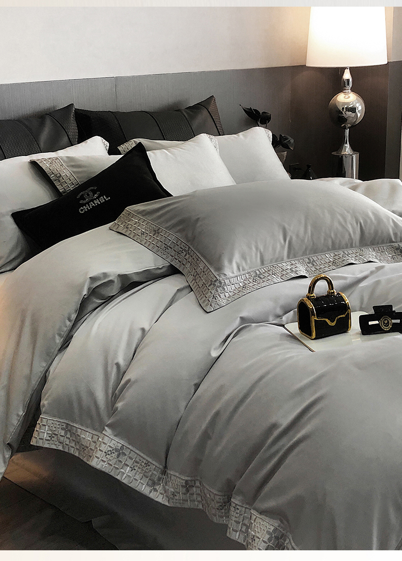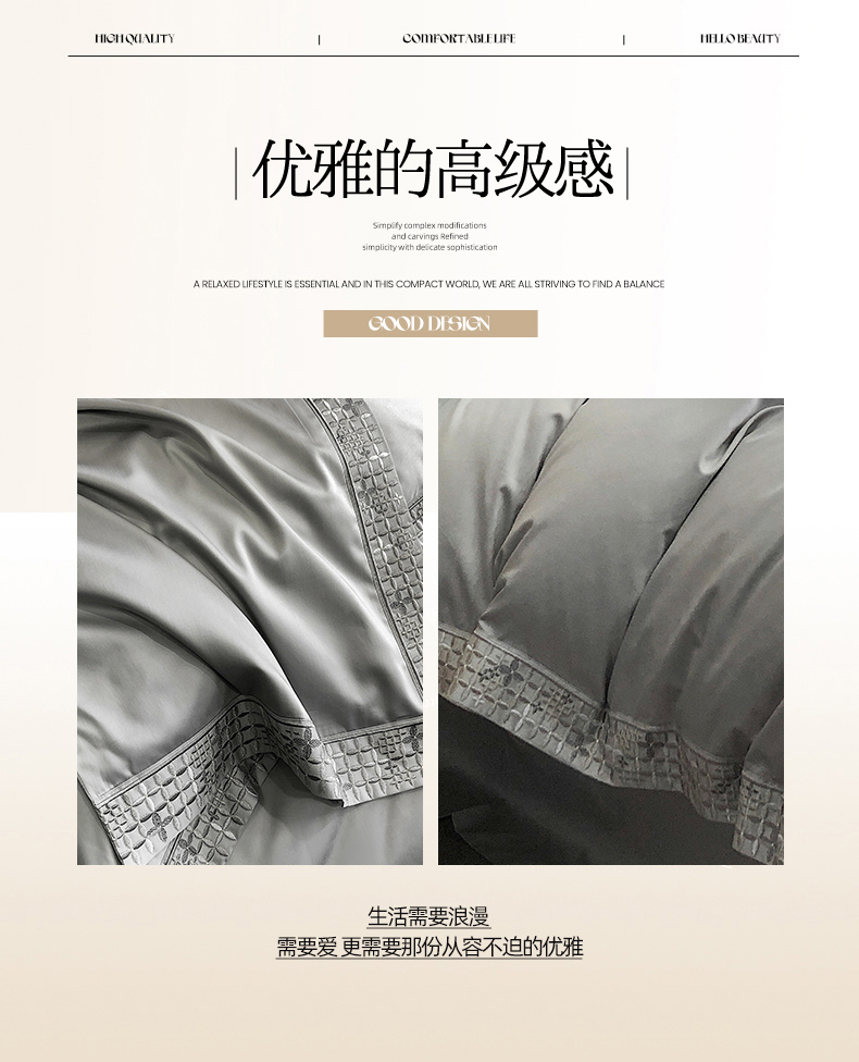商品名称:保罗圣迪奥 2025新款简约款全棉长绒棉四件套—星阑 星阑-绅士灰
