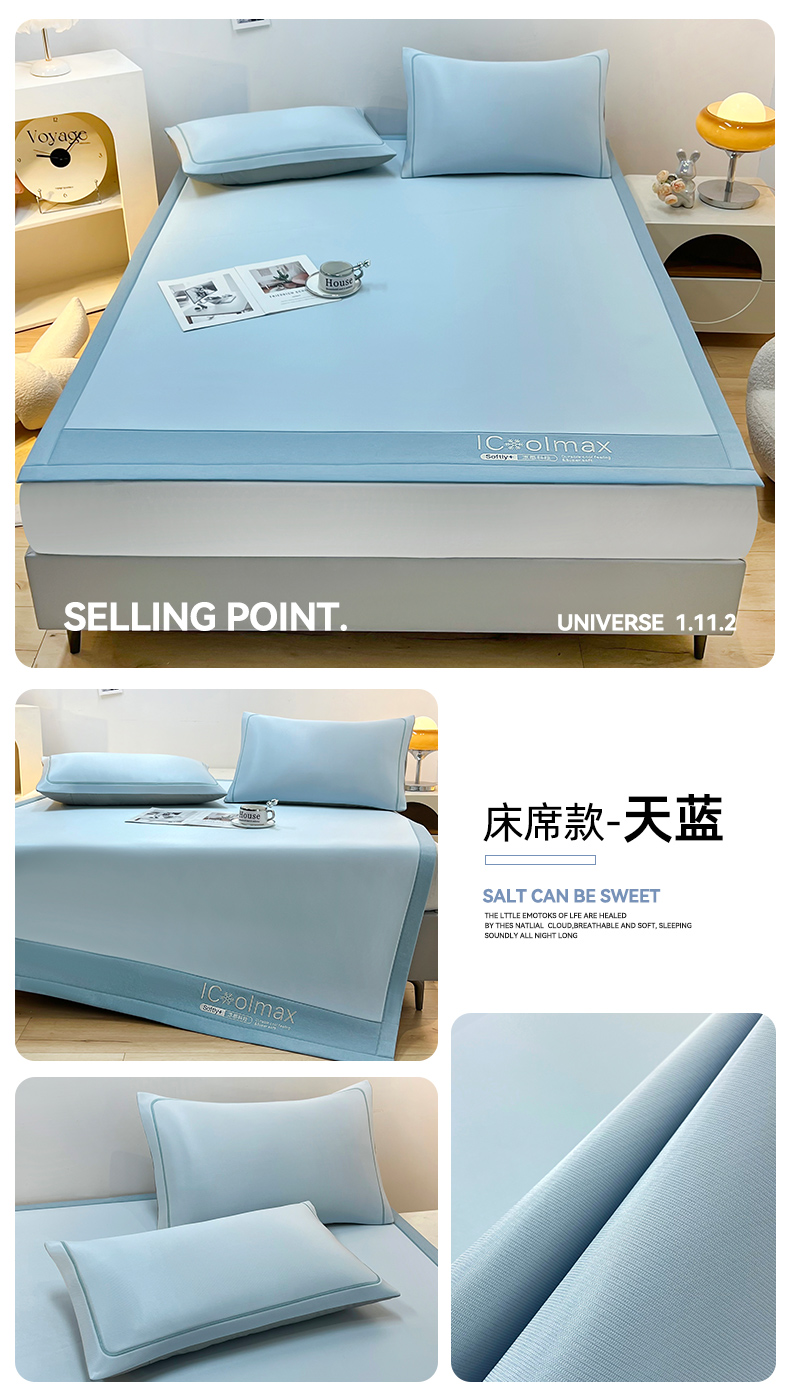 当前位置: 91家纺网 > 商品网购 > 床上用品 > 凉席 > 凉席套件 > 全季家居 2025新款5A抗菌ICE系列凉感冰丝席 天蓝 床席款