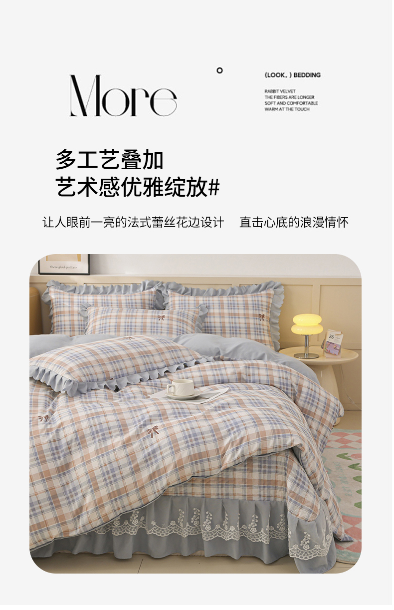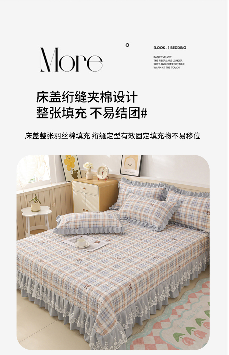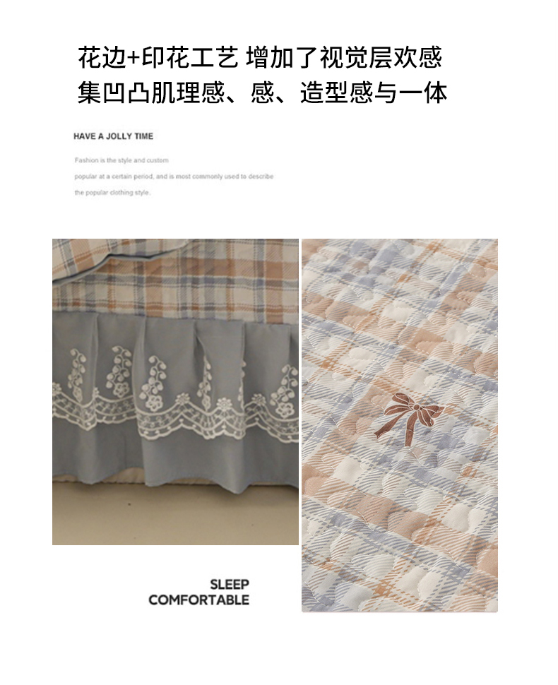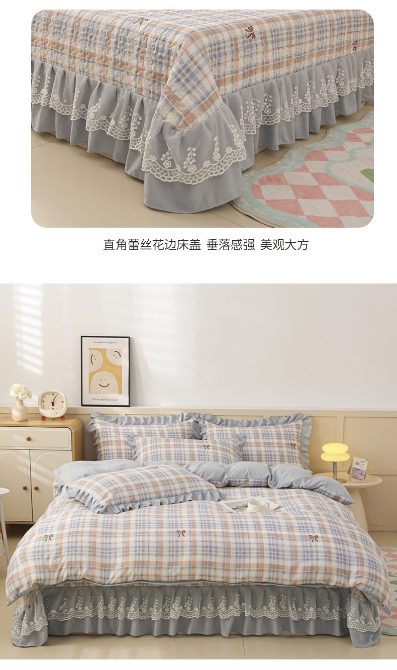 当前位置: 91家纺网 > 商品网购 > 床品套件 > 四件套 > 磨毛活性四件套 > 铠畅 2025新款法式花边云朵棉床盖款夏被四件套 格兰情调
