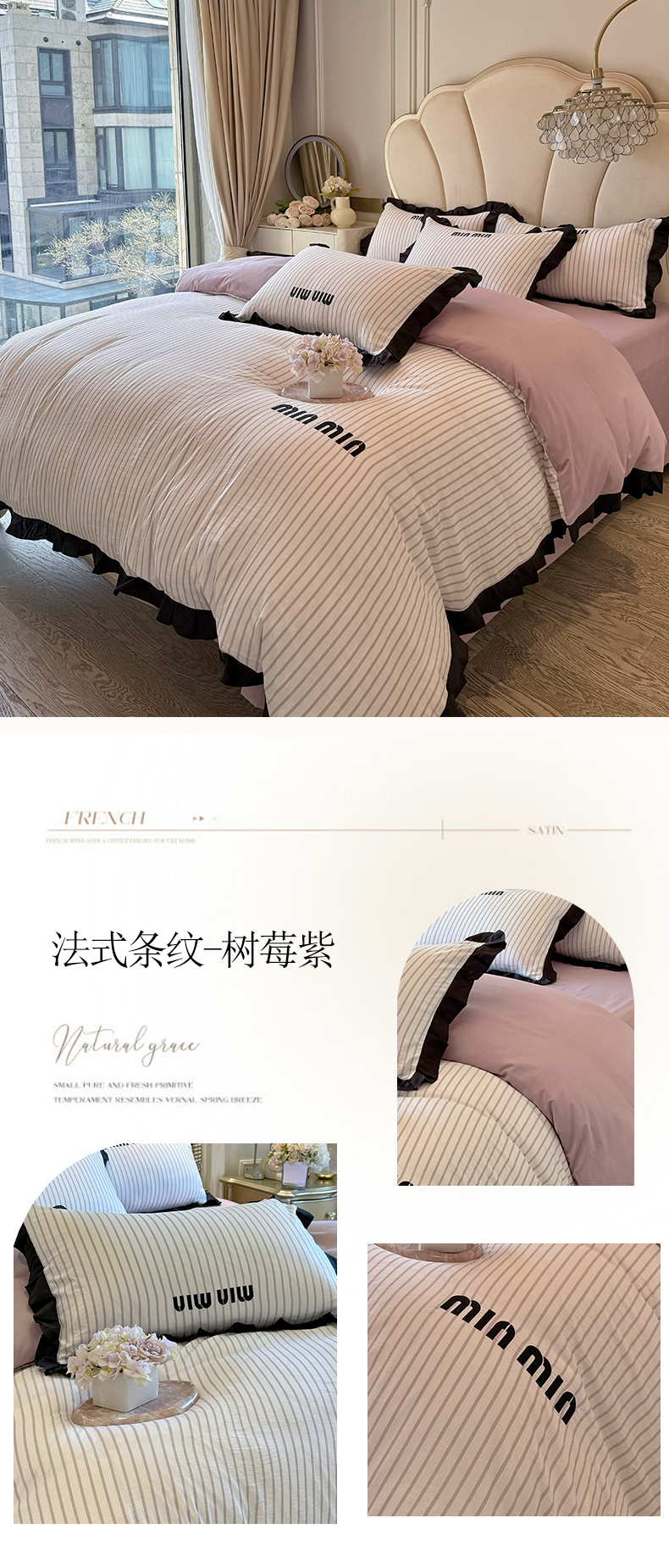 当前位置: 91家纺网 > 商品网购 > 床品套件 > 四件套 > 其它四件套 > 千希家纺2025新款法式小香风四件套 法式条纹-树莓紫