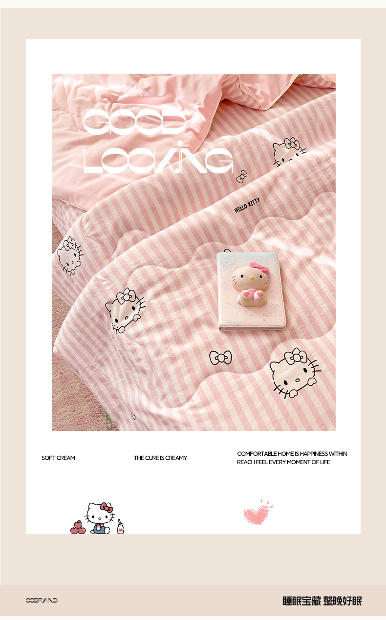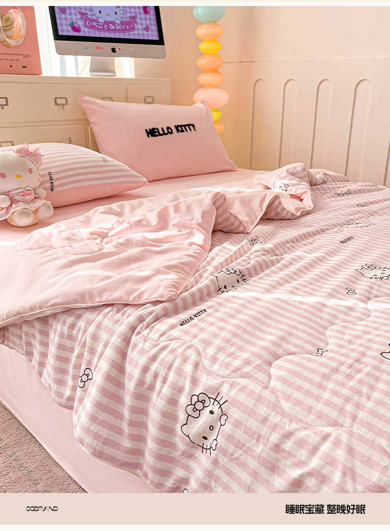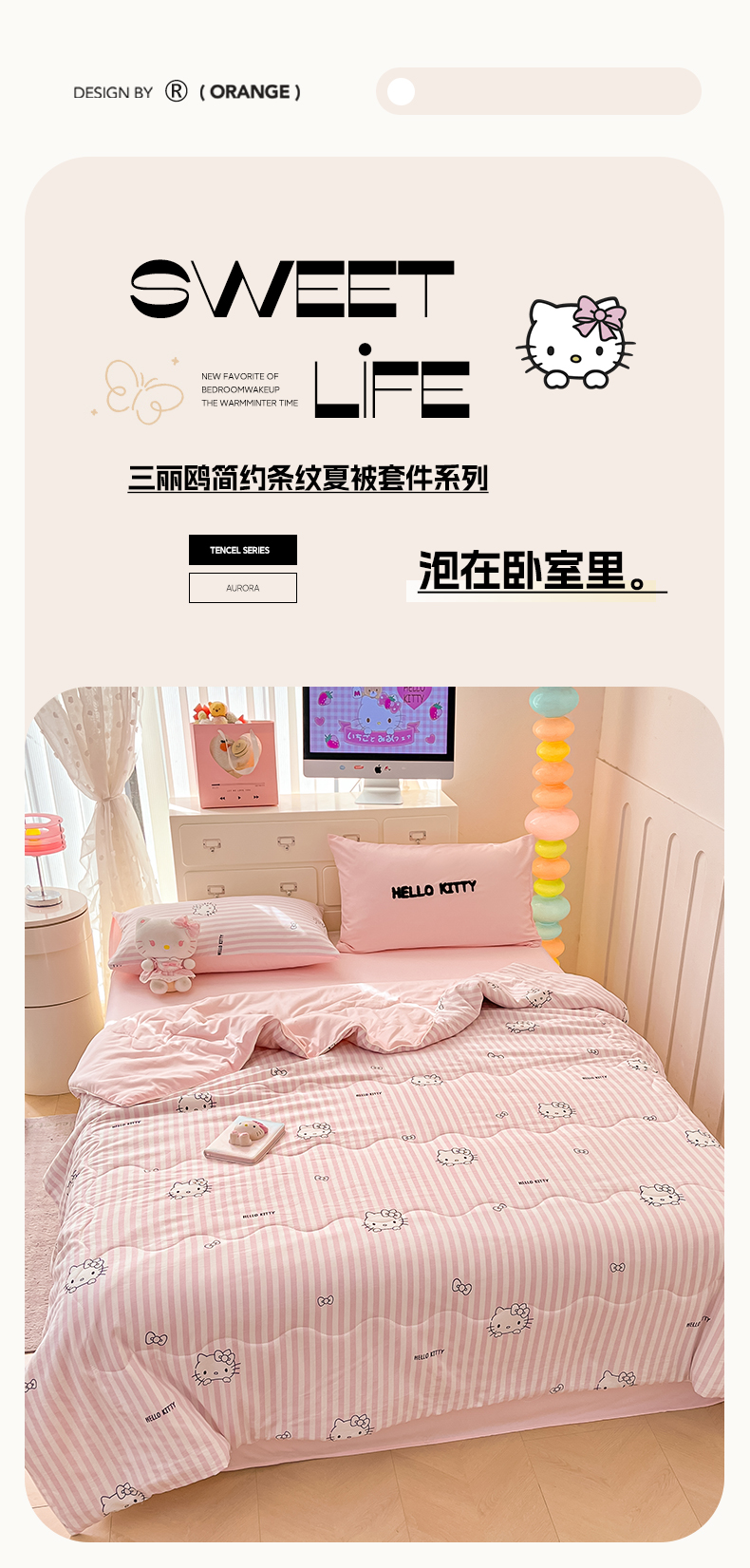 贝扬思家纺 2025新款三丽鸥简约条纹夏被夏凉被空调被套件系列 奶油条kt粉粉