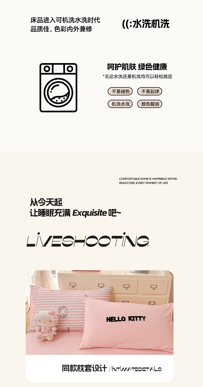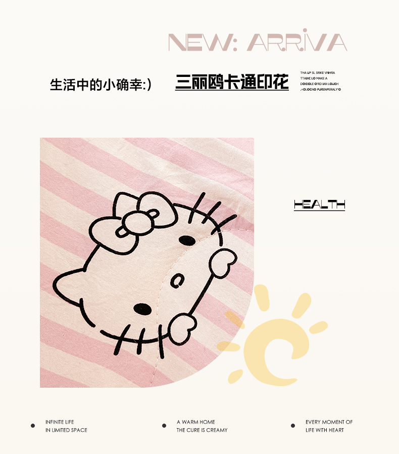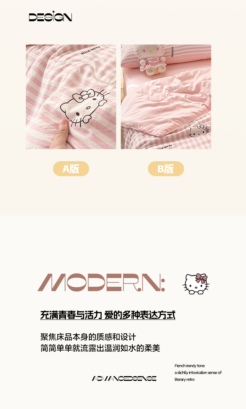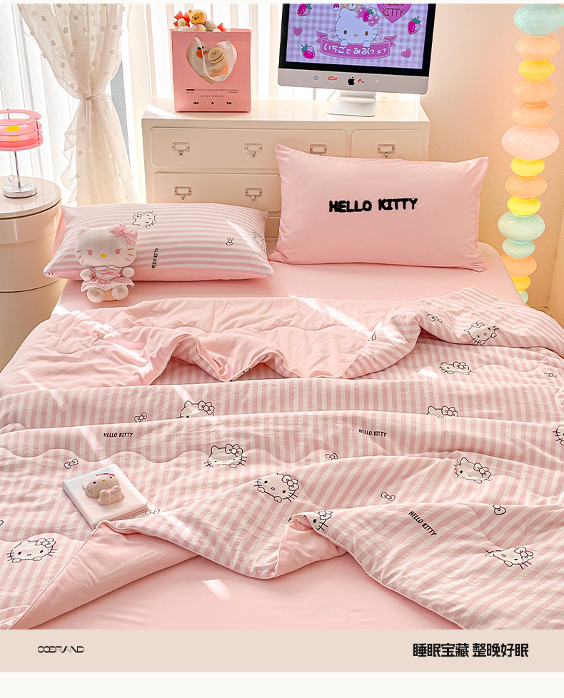贝扬思家纺 2025新款三丽鸥简约条纹夏被夏凉被空调被套件系列 奶油条kt粉粉