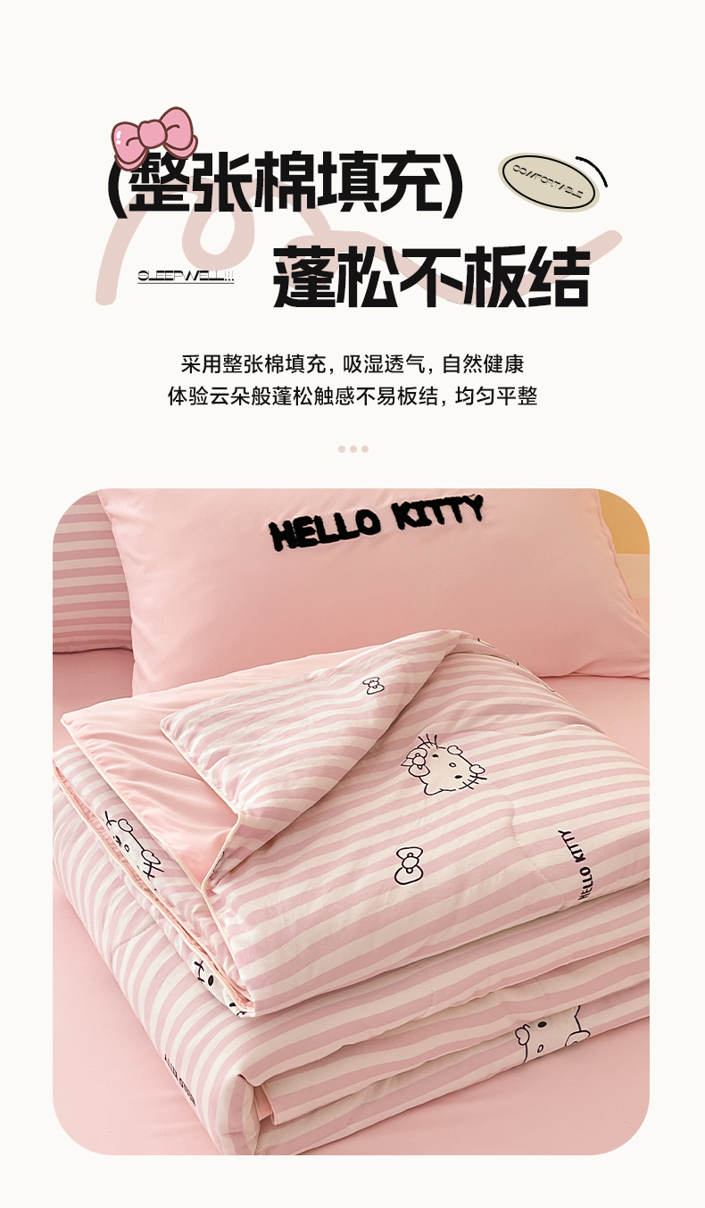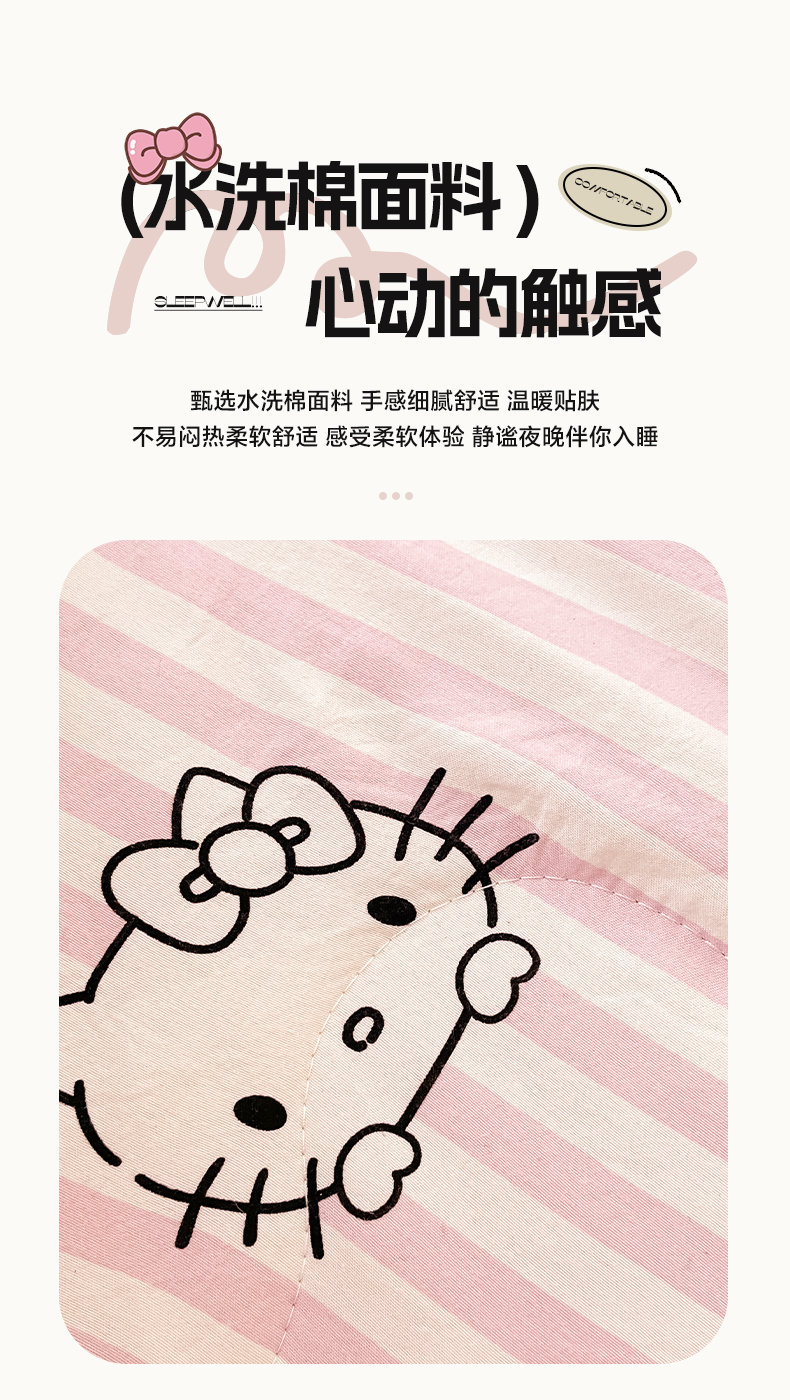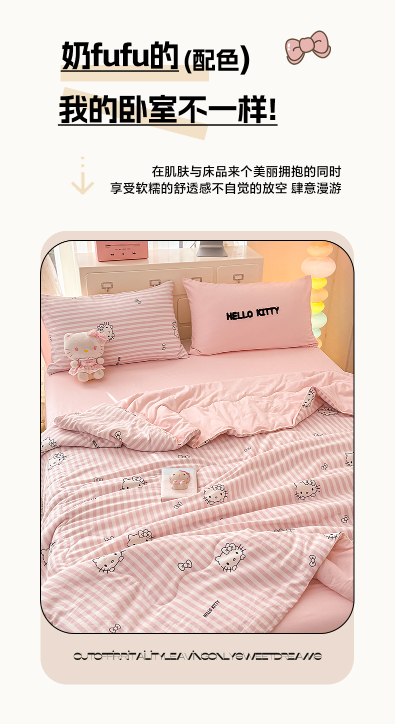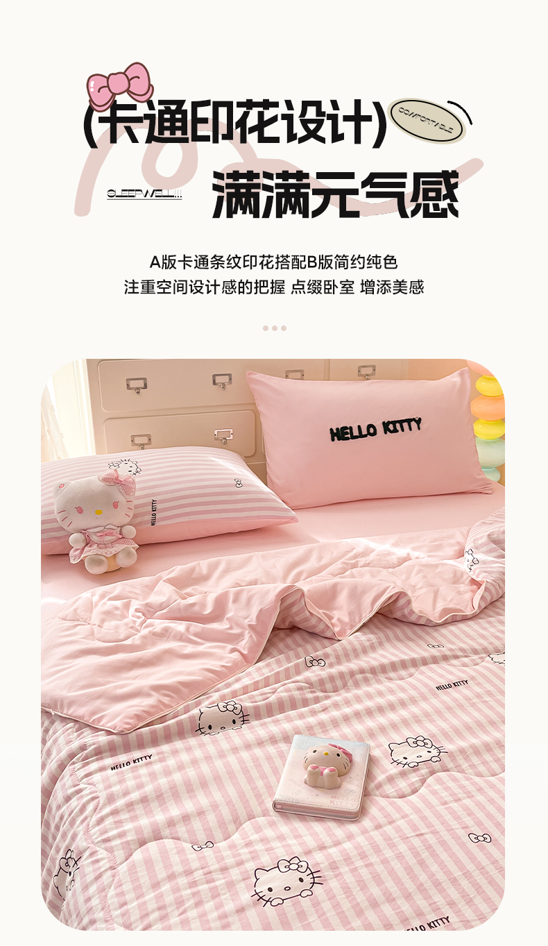 商品名称:贝扬思家纺 2025新款三丽鸥简约条纹夏被夏凉被空调被套件系列 奶油条kt粉粉