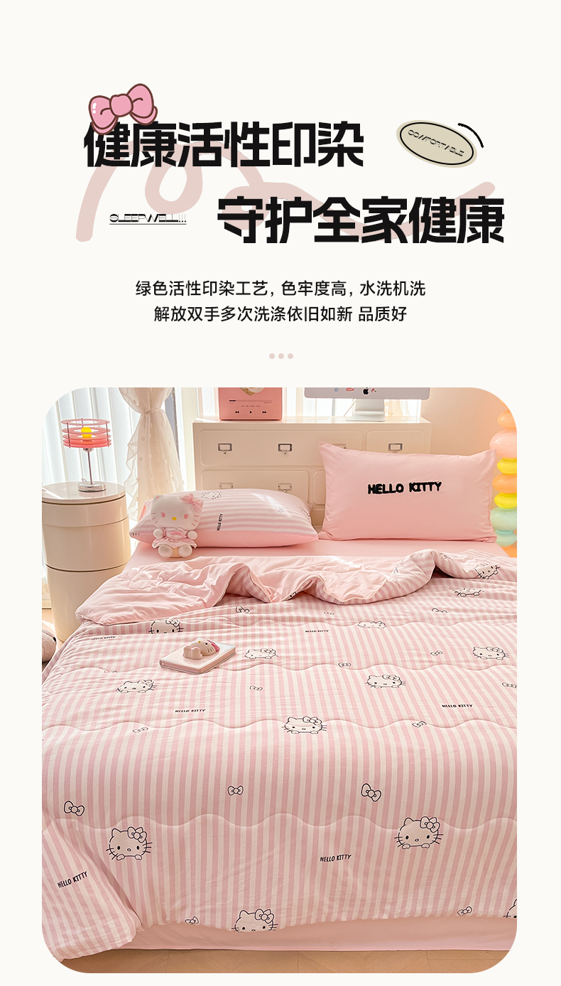 (总)贝扬思家纺 2025新款三丽鸥简约条纹夏被夏凉被空调被套件系列,奶油条kt粉粉,奶油条kt粉黄,奶油条kt黄黄,奶油条kt蓝蓝,奶油条kt紫紫