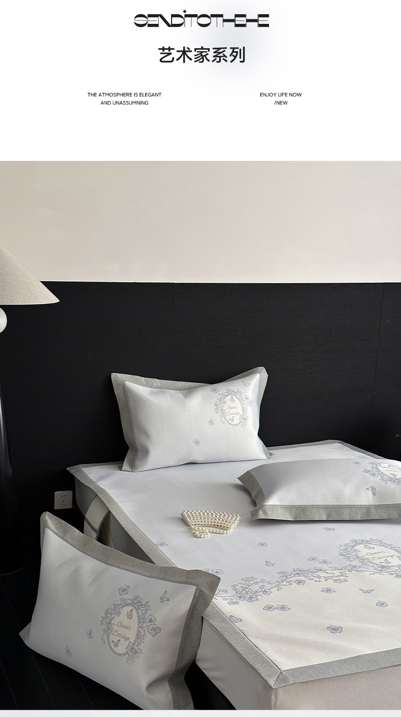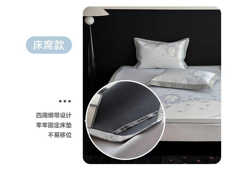 (总)三味舒屋 凉感抗菌防螨印花冰丝养生席_刺绣系列,奢路蓝 床席,奢路蓝 床笠,奢路米 床席,奢路米 床笠