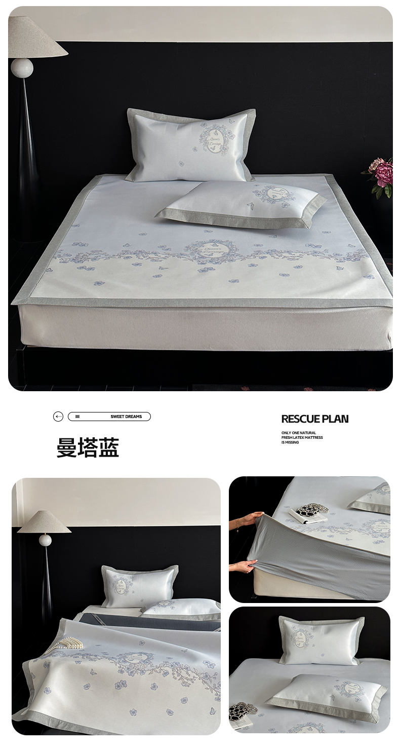 三味舒屋 2025新款凉感抗菌南法恬谧系列大版数码印花冰丝床席-床笠 曼塔蓝-床笠款