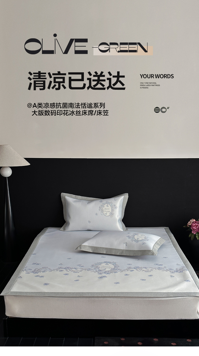 (总)三味舒屋 2025新款 凉感抗菌防螨印花冰丝养生席(新升级7A抗菌),花非花 床席,花非花 床笠,雾非雾 床席,雾非雾 床笠
