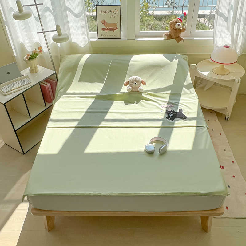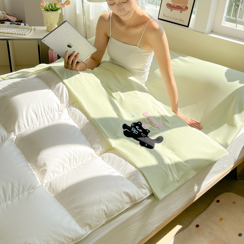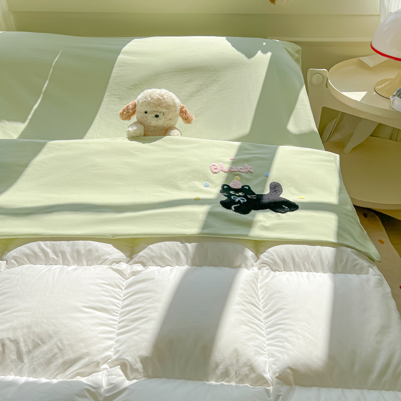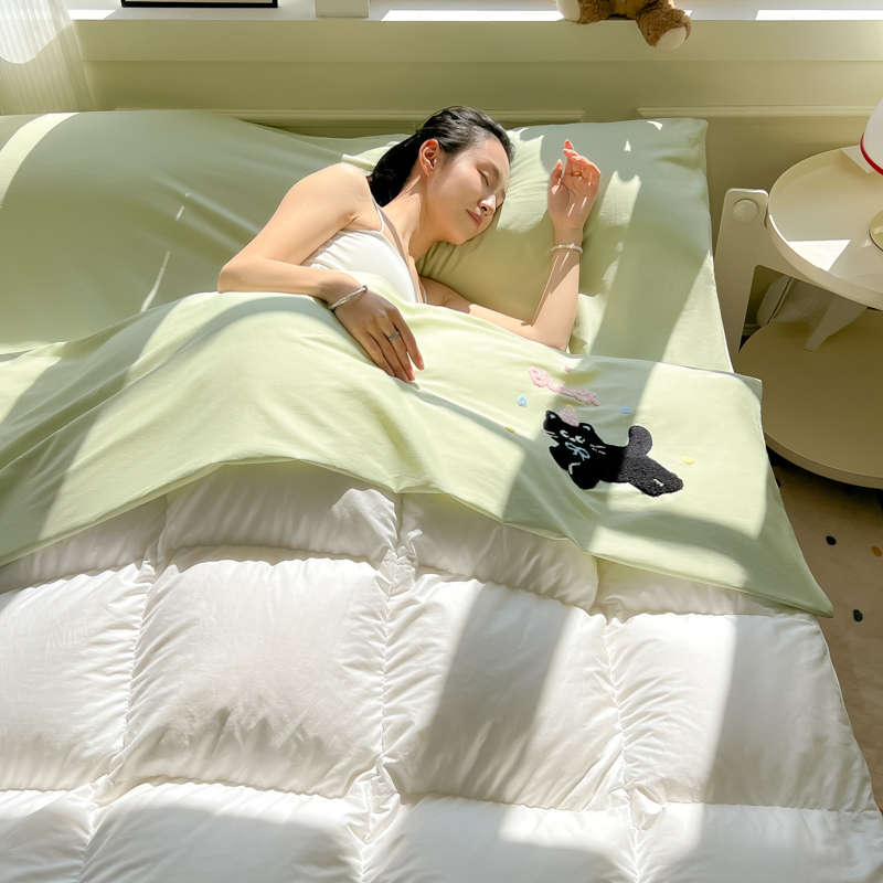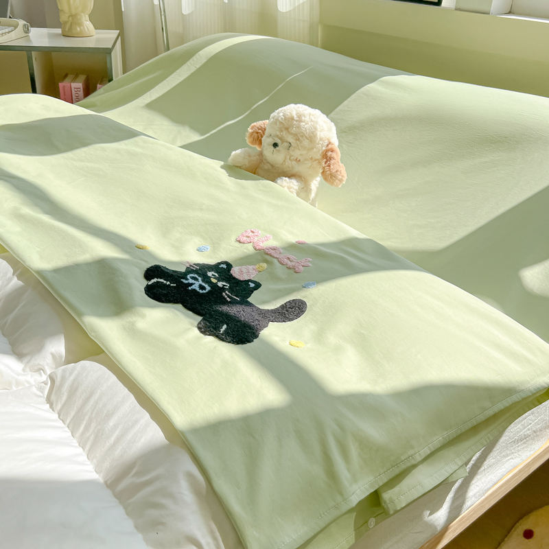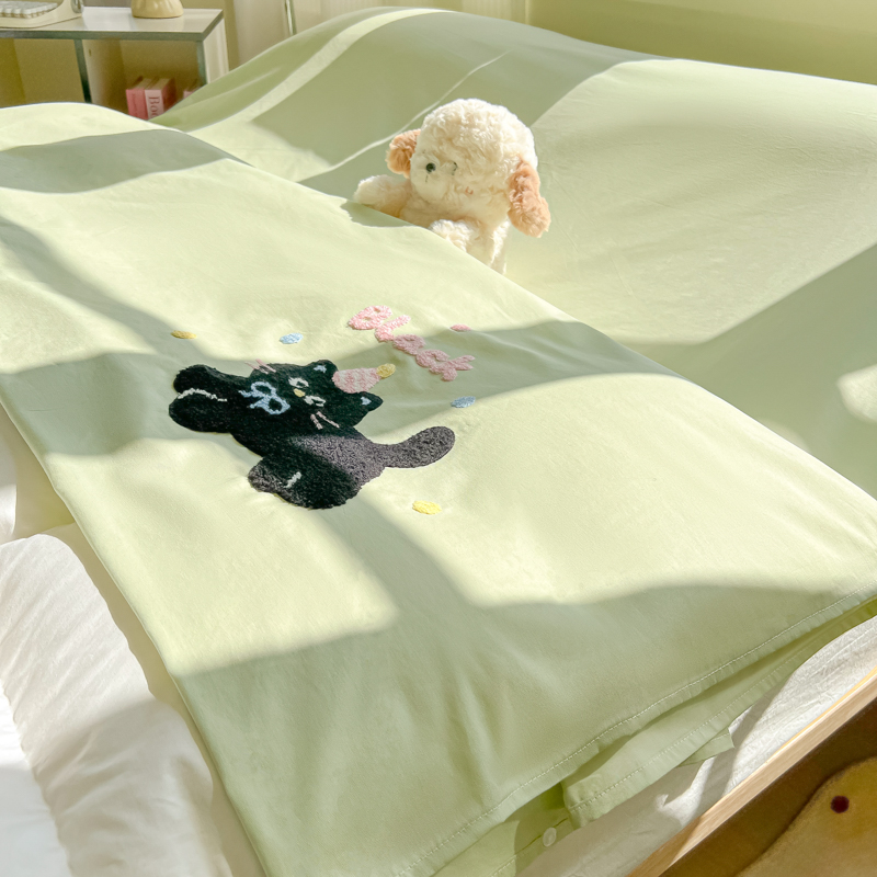 柒星睡袋 2025新款款40支全棉纯色毛巾绣可拆分隔脏睡袋 黑猫 绿