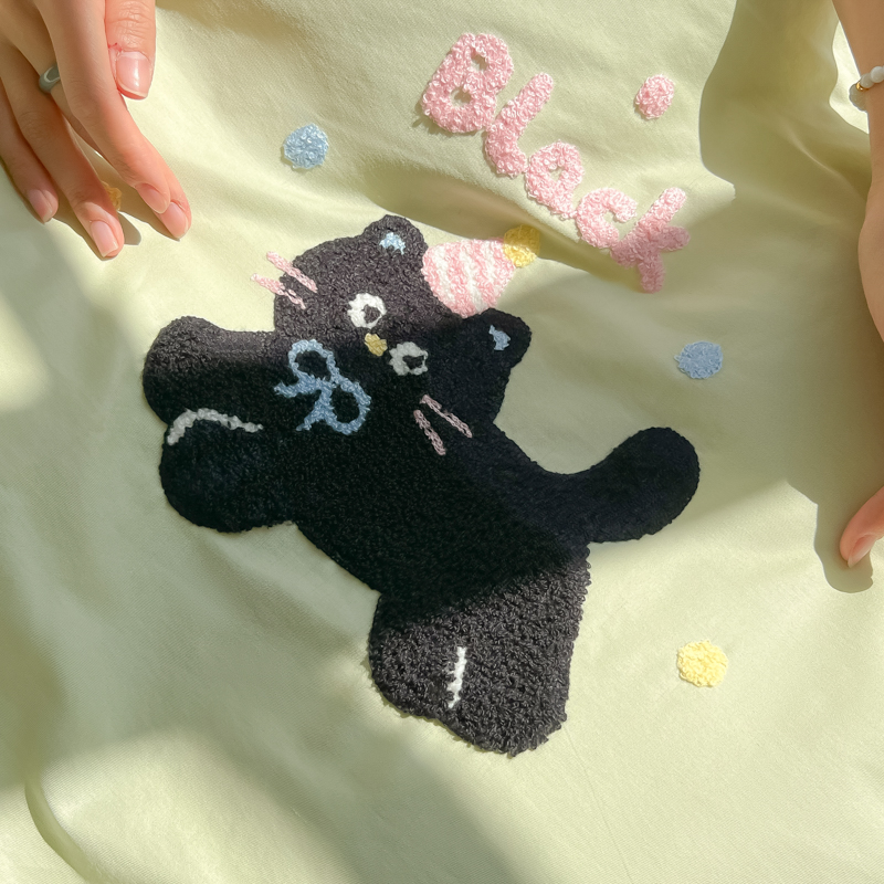 商品名称:柒星睡袋 2025新款款40支全棉纯色毛巾绣可拆分隔脏睡袋 黑猫 绿