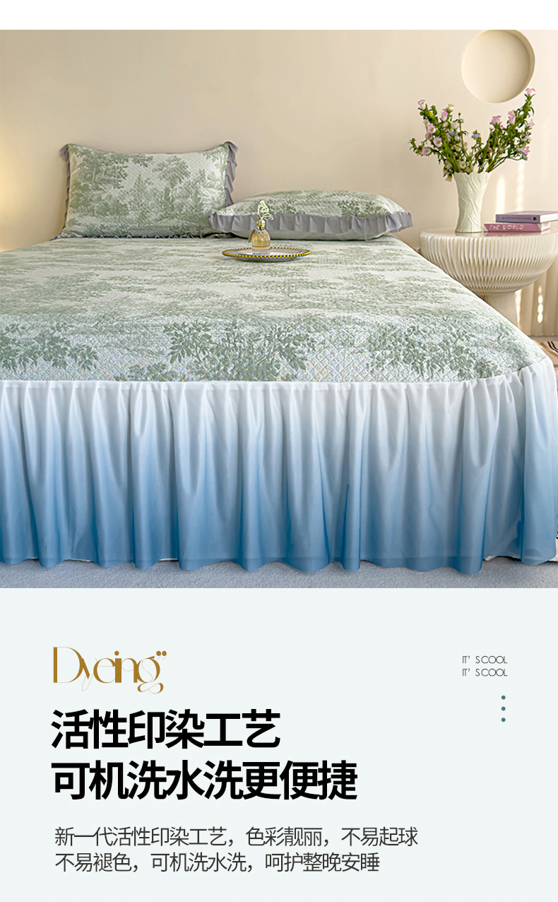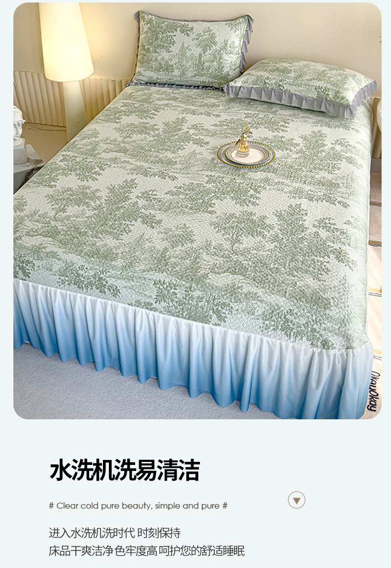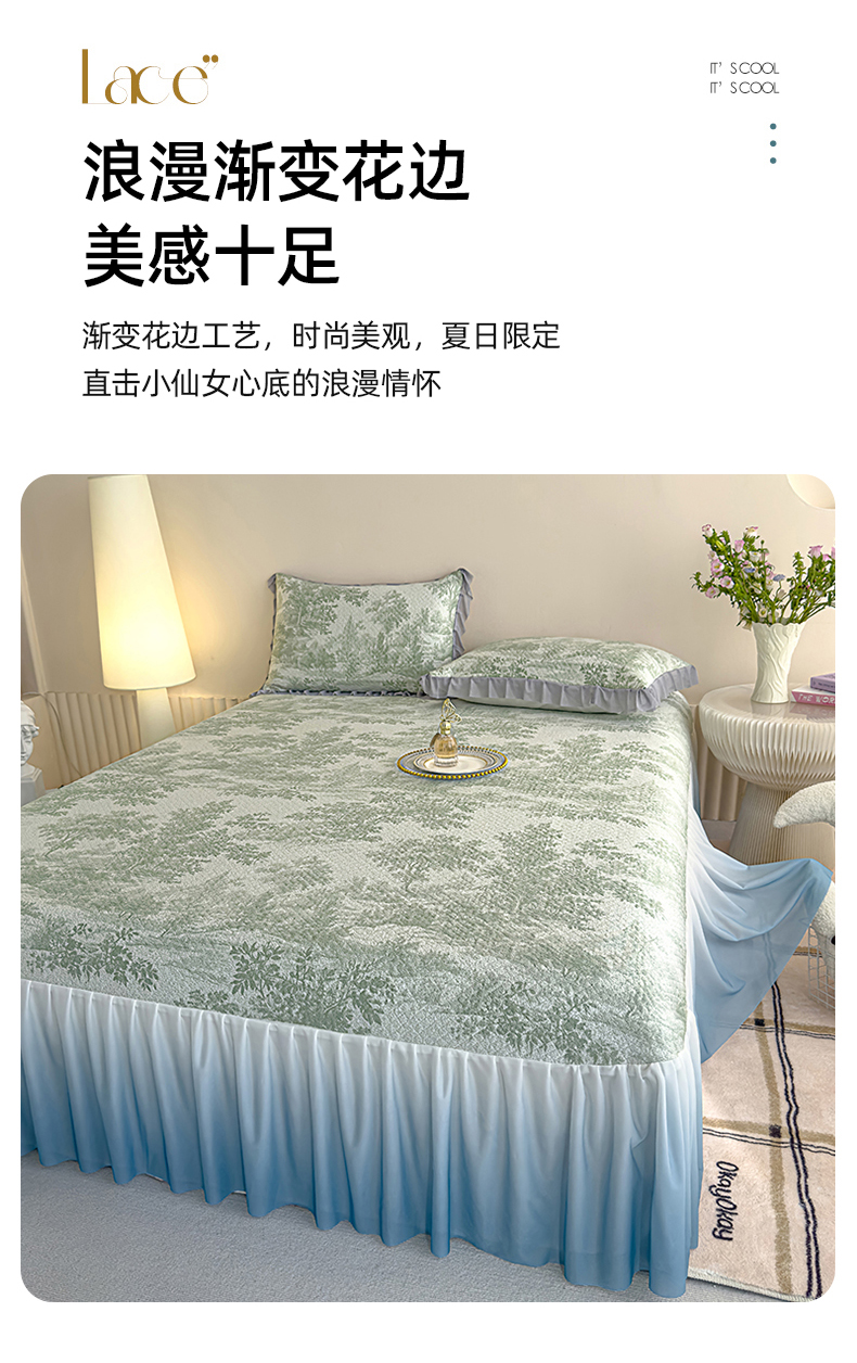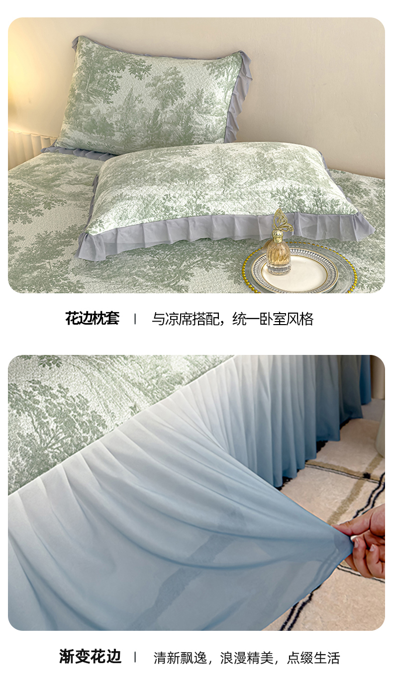 冬然家纺 2025新款冰豆豆席子凉席床裙款 梦幻森林-绿