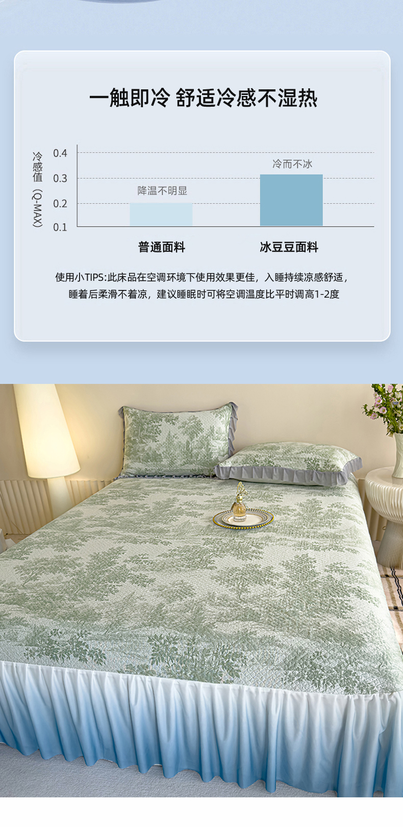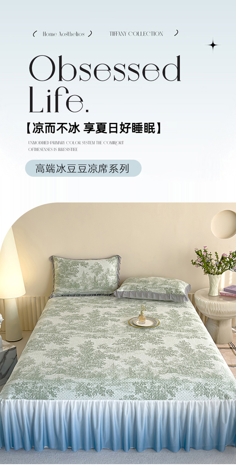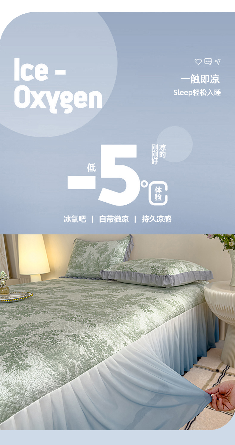 冬然家纺 2025新款冰豆豆席子凉席床裙款 梦幻森林-绿