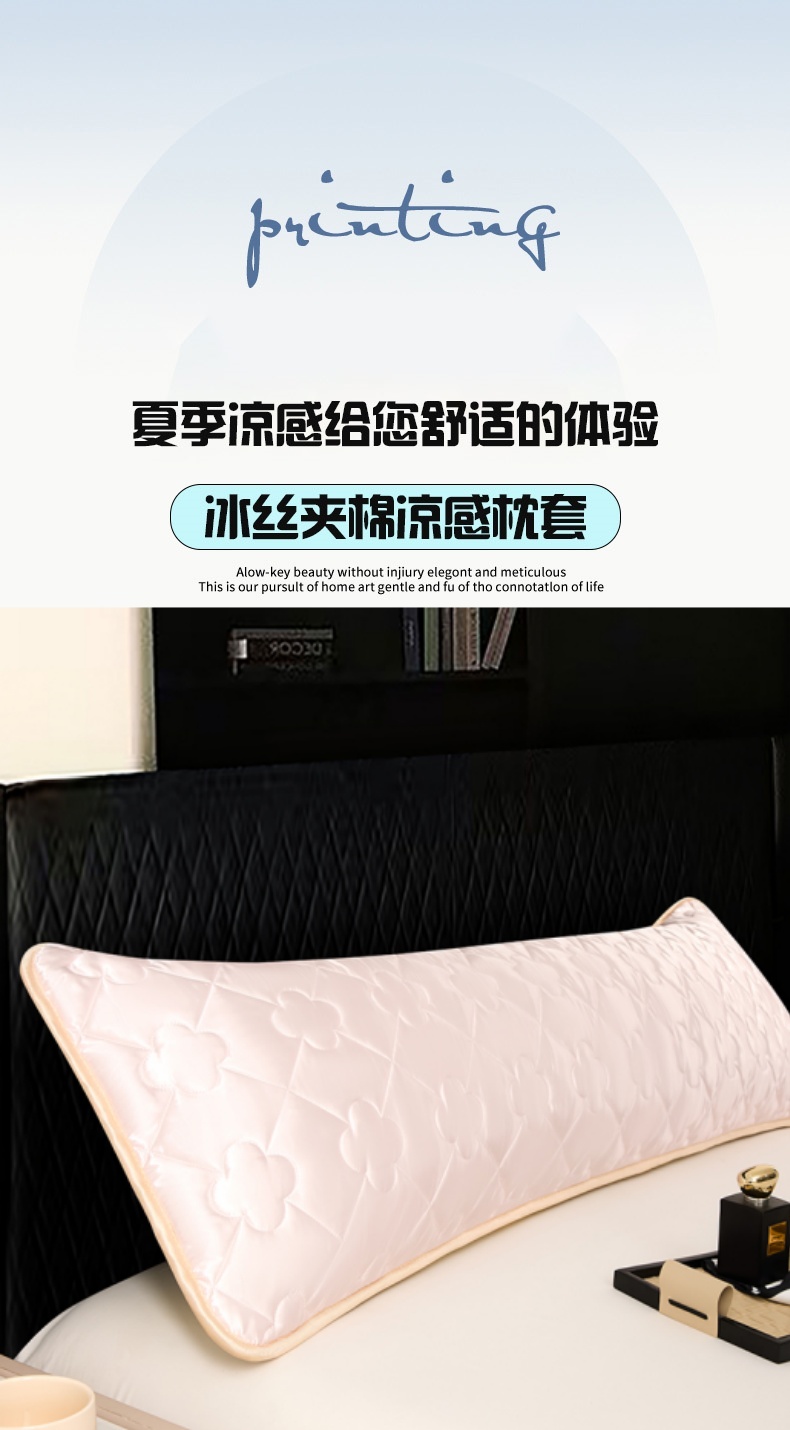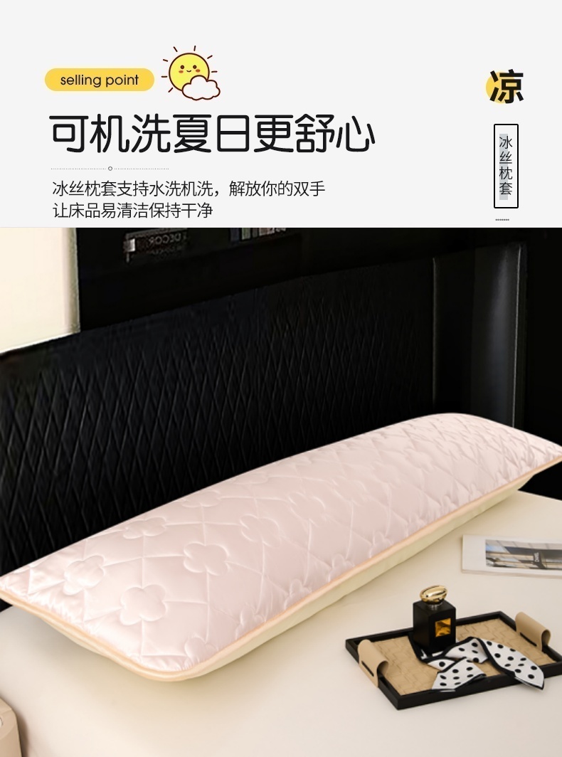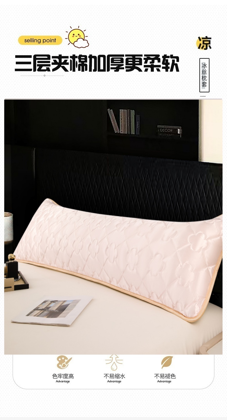 商品名称:梦舒羽 2025新款夏季冰丝凉感夹棉枕套双人情侣枕头套加长加厚枕芯套1.5m内胆套 夹棉加厚-淡雅玉