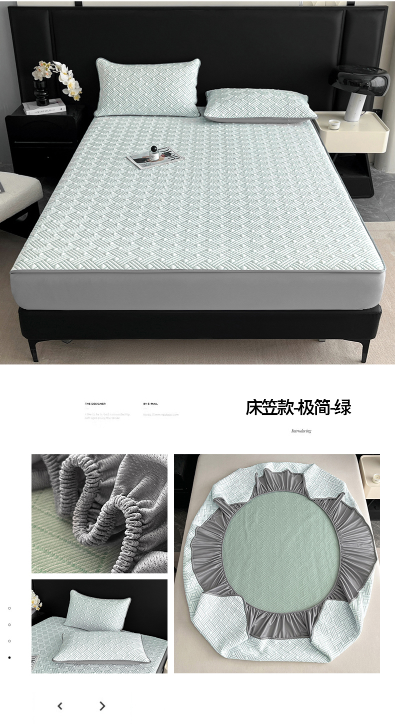 • 91家纺网 家纺一手货源 找家纺 欧邦 2025新款加厚PE中分子凉感豆豆软席-极简系列 床笠款-极简-绿