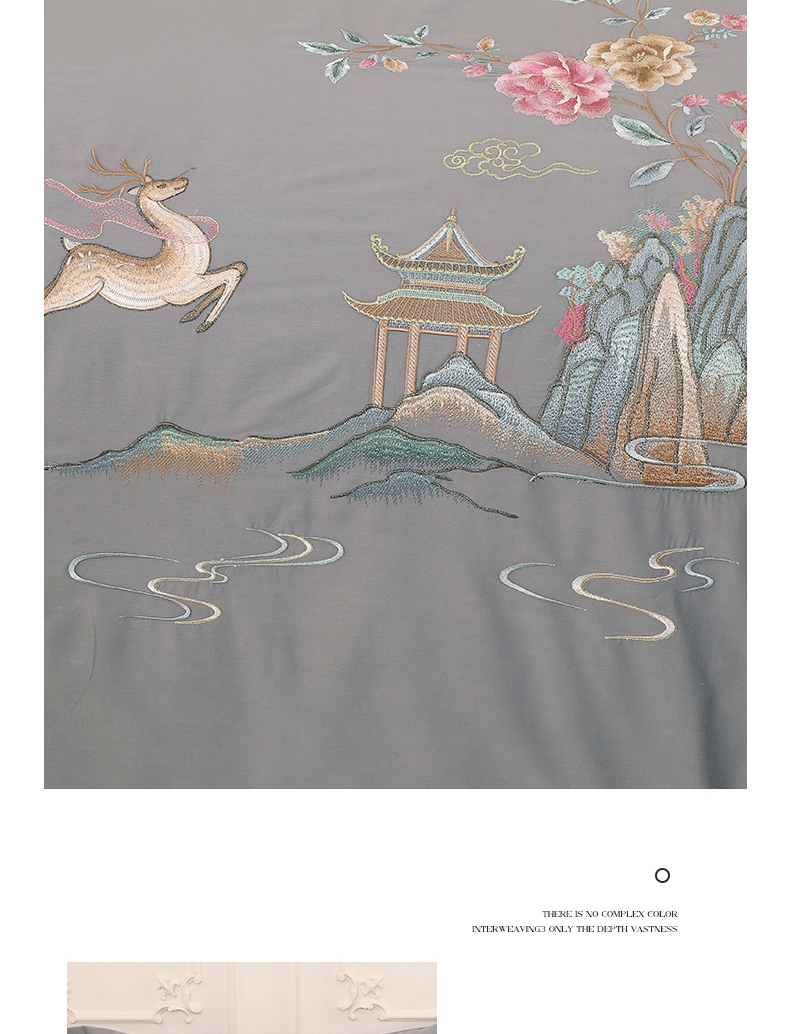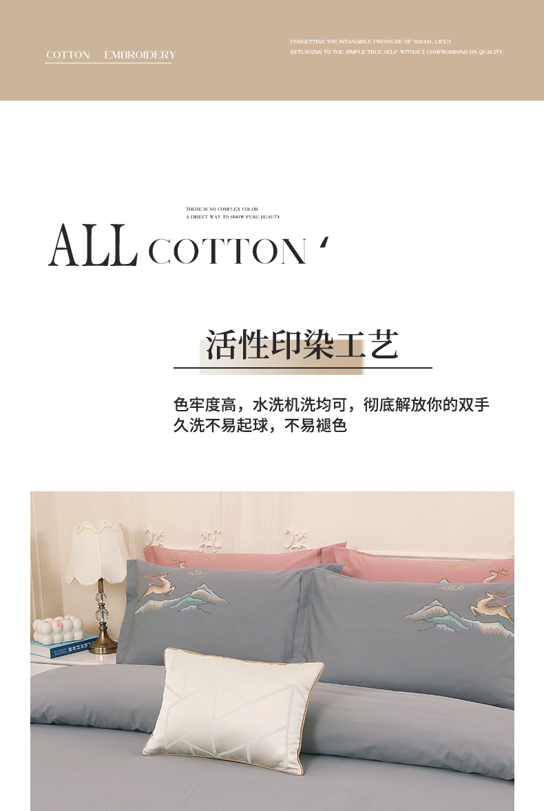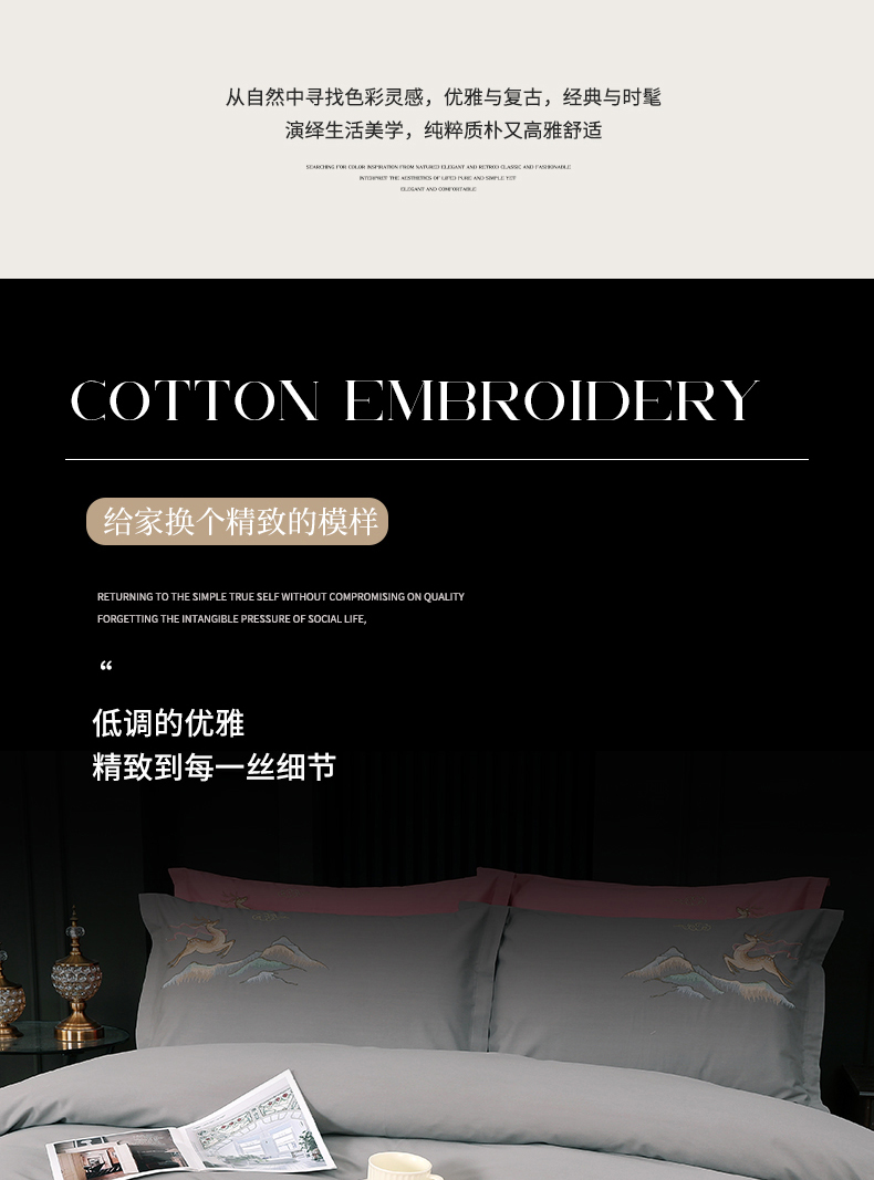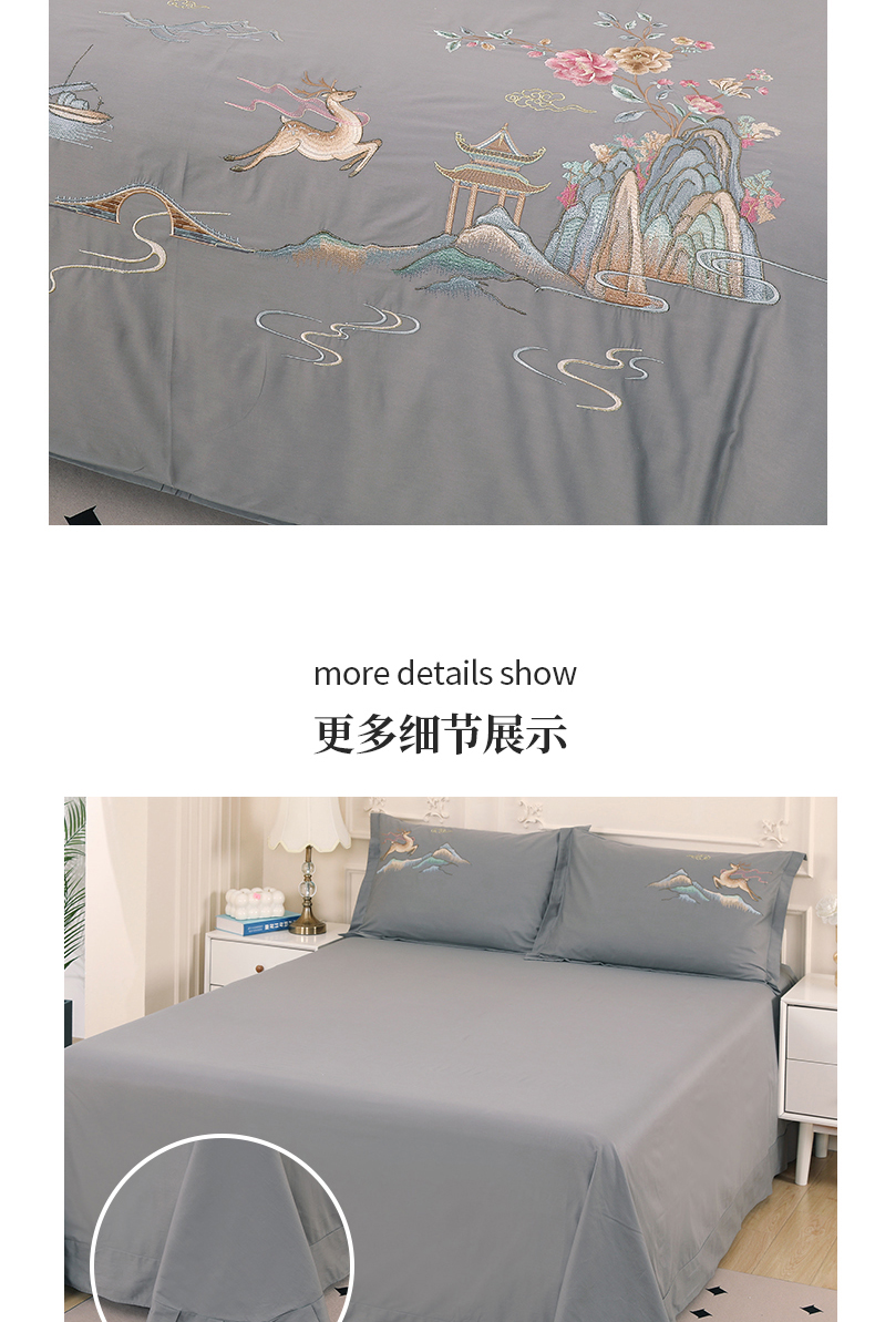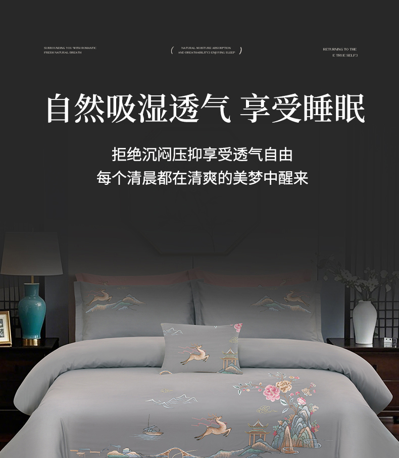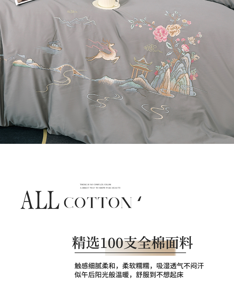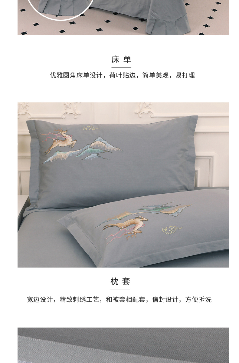 商品名称:浩情国际婚庆供货中心 2026新款100支全棉高端刺绣四件套一鹿常红系列 一鹿常红-气质灰