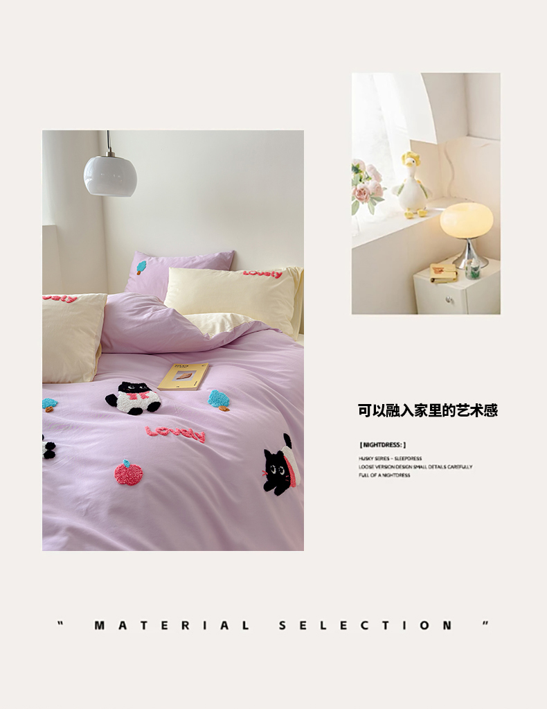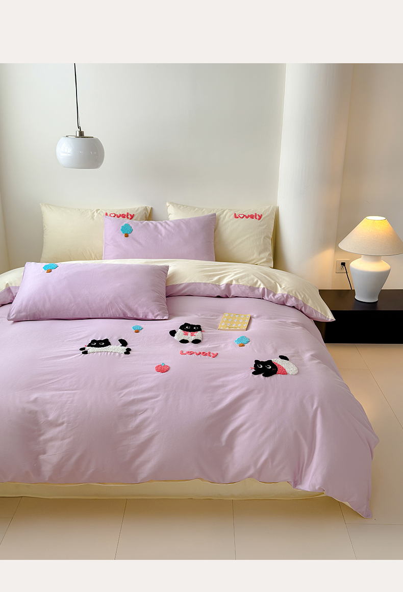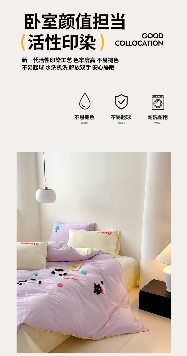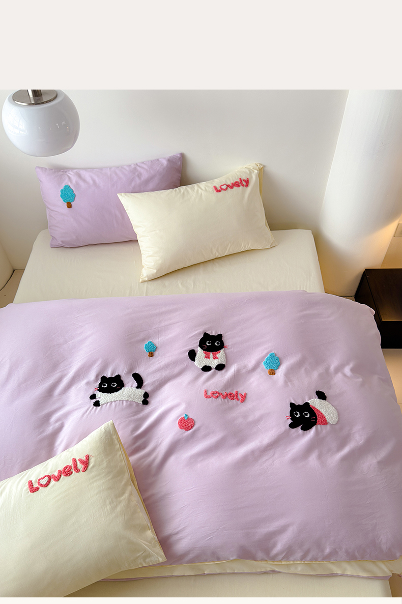当前位置: 91家纺网 > 商品网购 > 床品套件 > 四件套 > 全棉普通四件套 > 锦觅家纺 2025新款卡通小清新毛巾绣全棉纯棉四件套(大版定位花型) 嬉戏猫咪