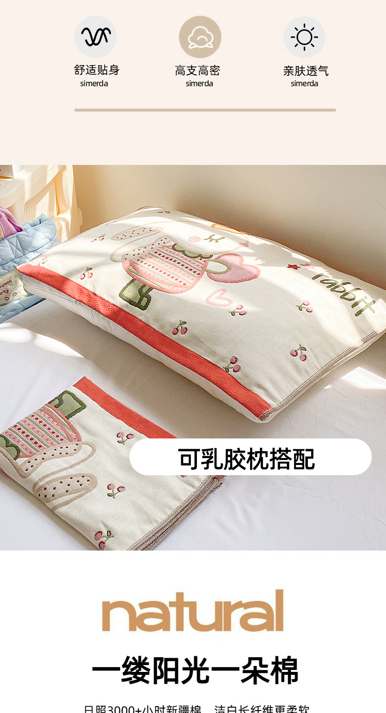 商品名称:(总)美宜家 2025新款40*60儿童纯棉A类纱布枕巾乳胶专用高档枕巾