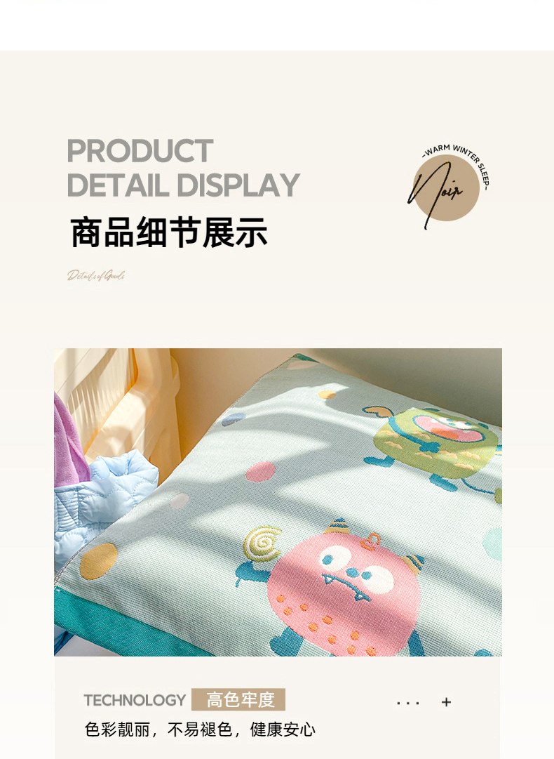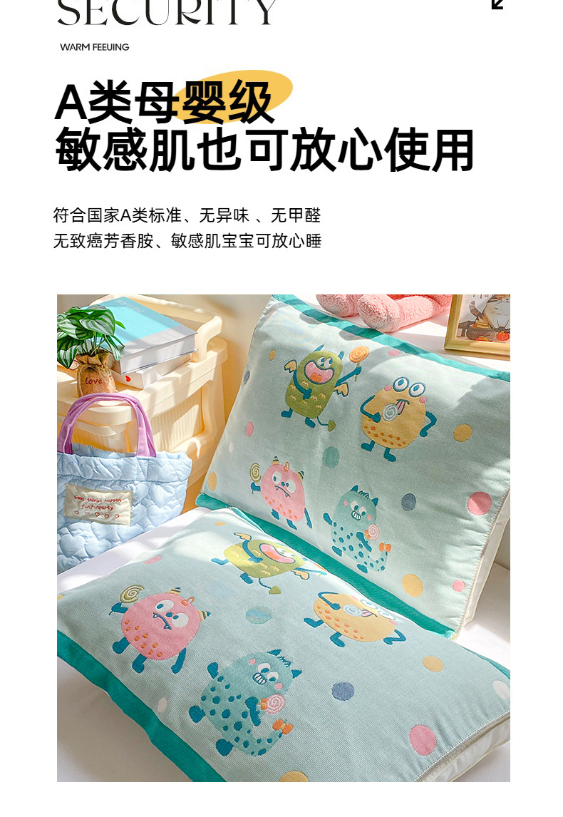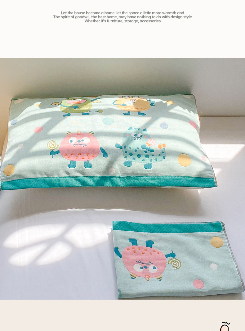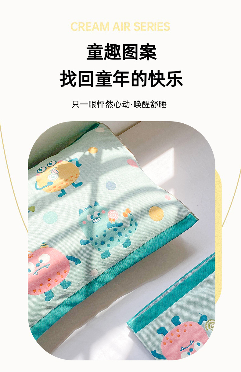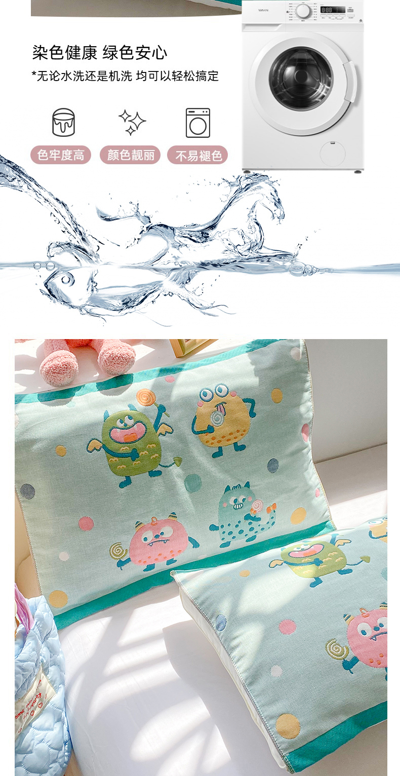 商品名称:美宜家 2025新款40*60儿童纯棉A类纱布枕巾乳胶专用高档枕巾 波点兽 一对