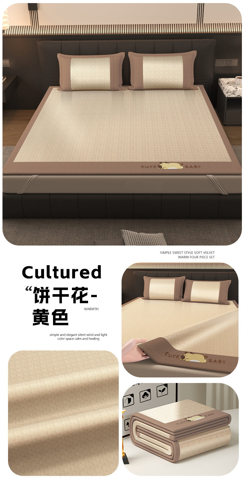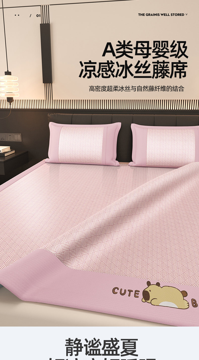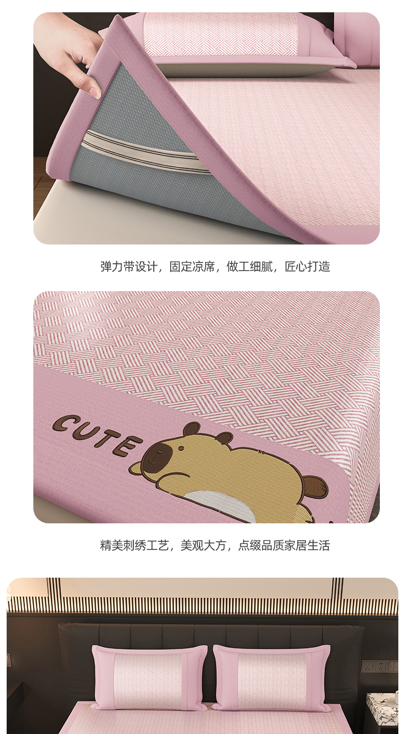 商品名称:(总)慕梵家居 2025新款冰丝提花饼干花绣花款凉席席子小水豚-成人床