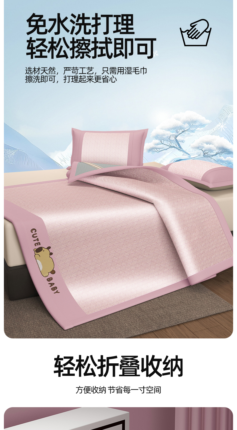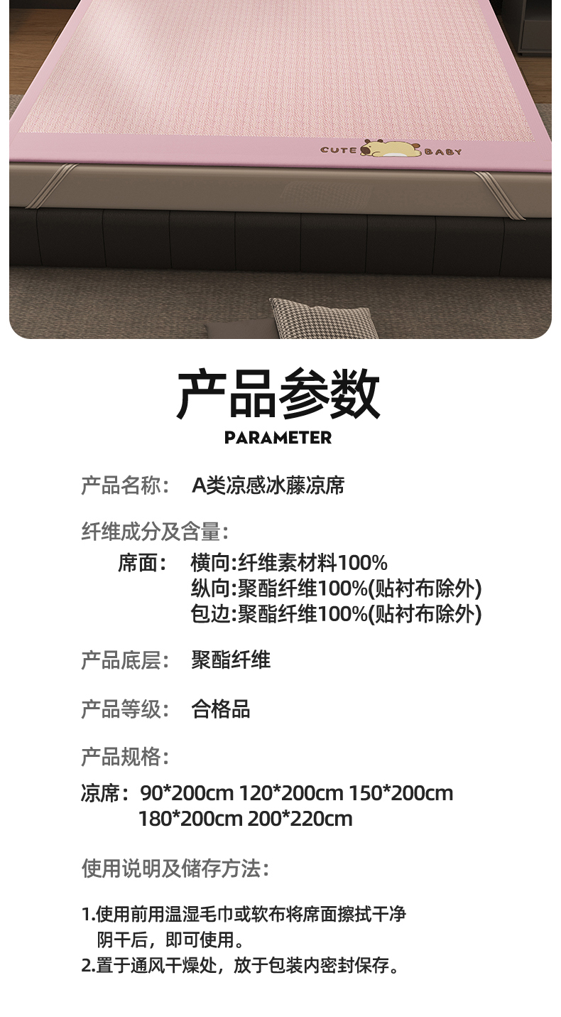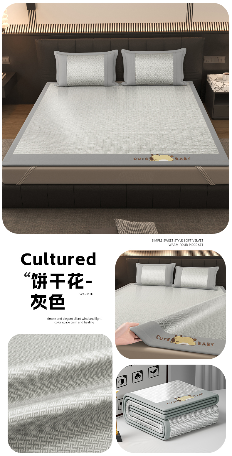 商品名称:(总)慕梵家居 2025新款冰丝提花饼干花绣花款凉席席子小水豚-成人床