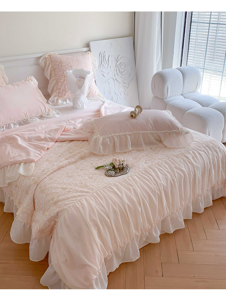 (总)吾欢心 2025新款公主风雪纺边四季通用夹棉床盖,床盖白,床盖粉,床盖黄,床盖咖,床盖绿,床盖抹茶绿,床盖紫
