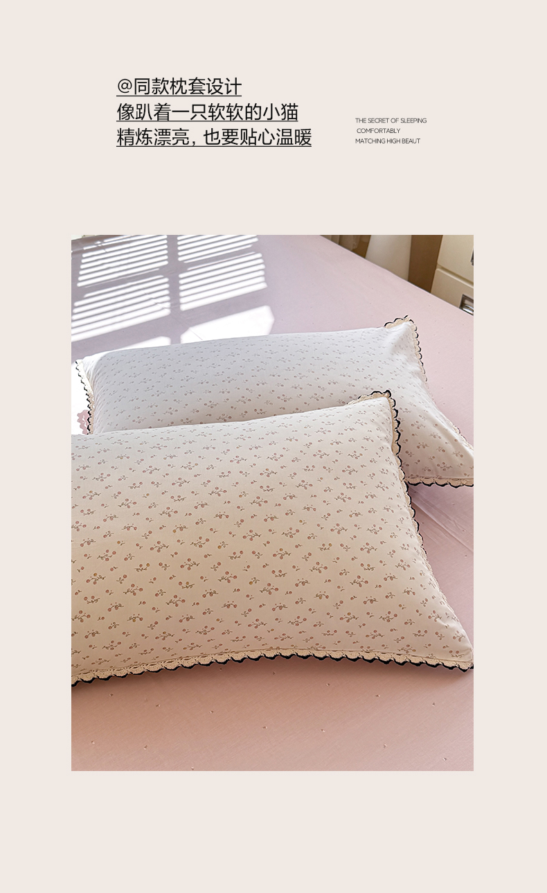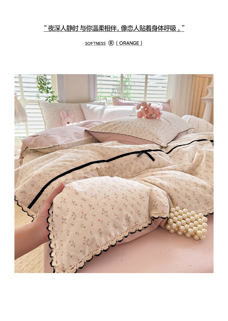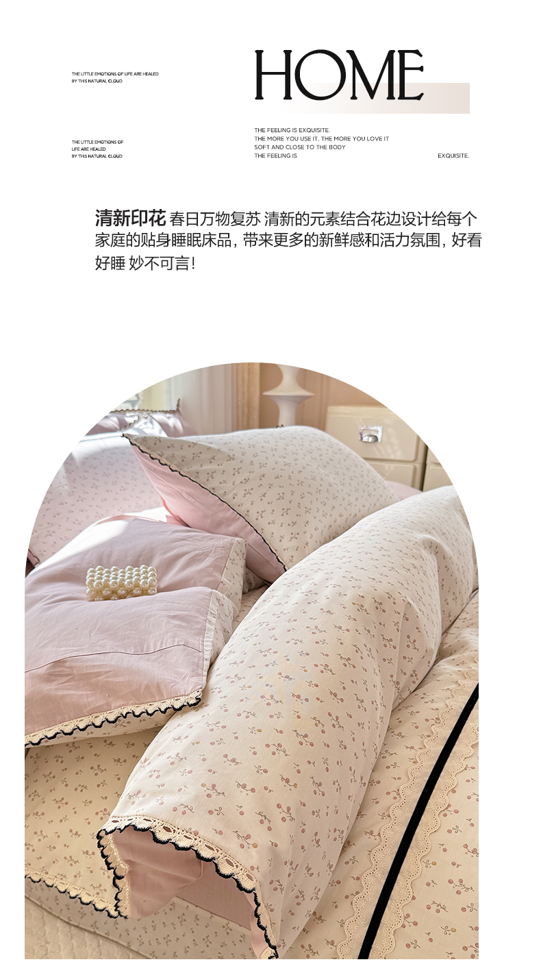 商品名称:艾唯希2025新款全棉小香风工艺四件套纯棉小花边碎花被套韩式公主风 小青藤-米