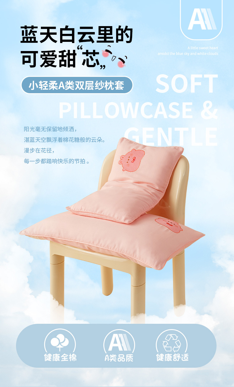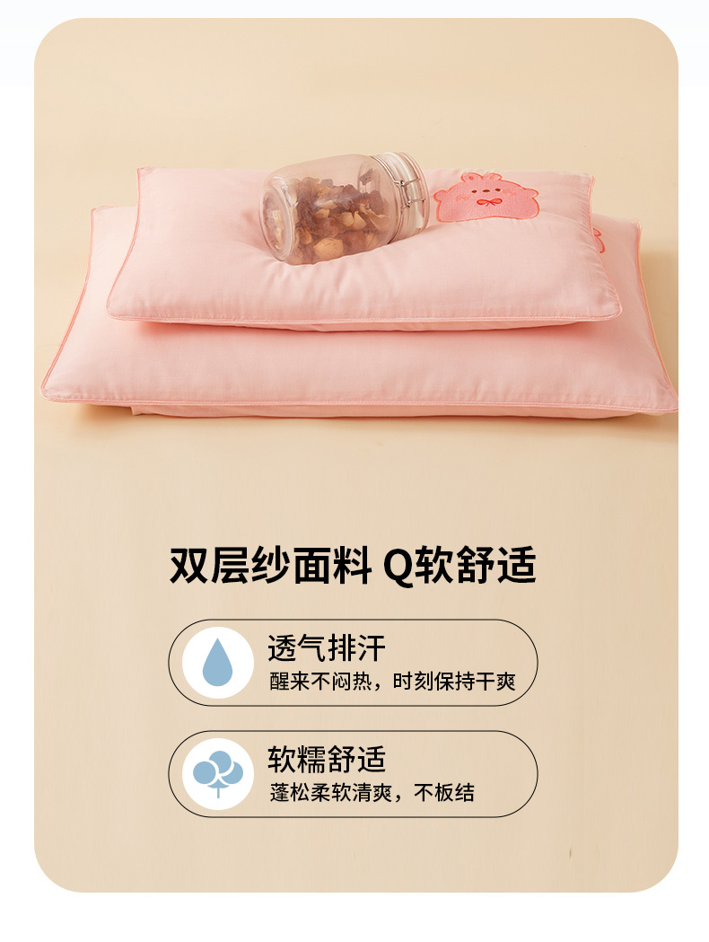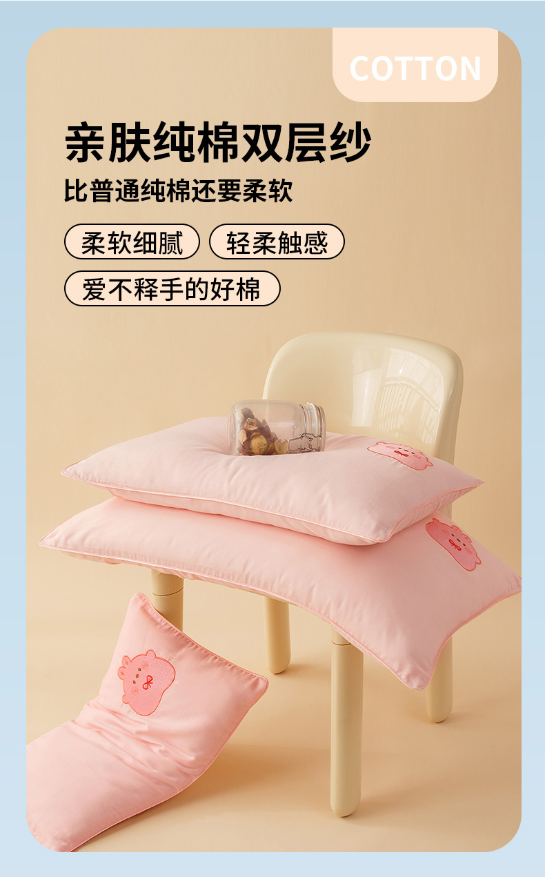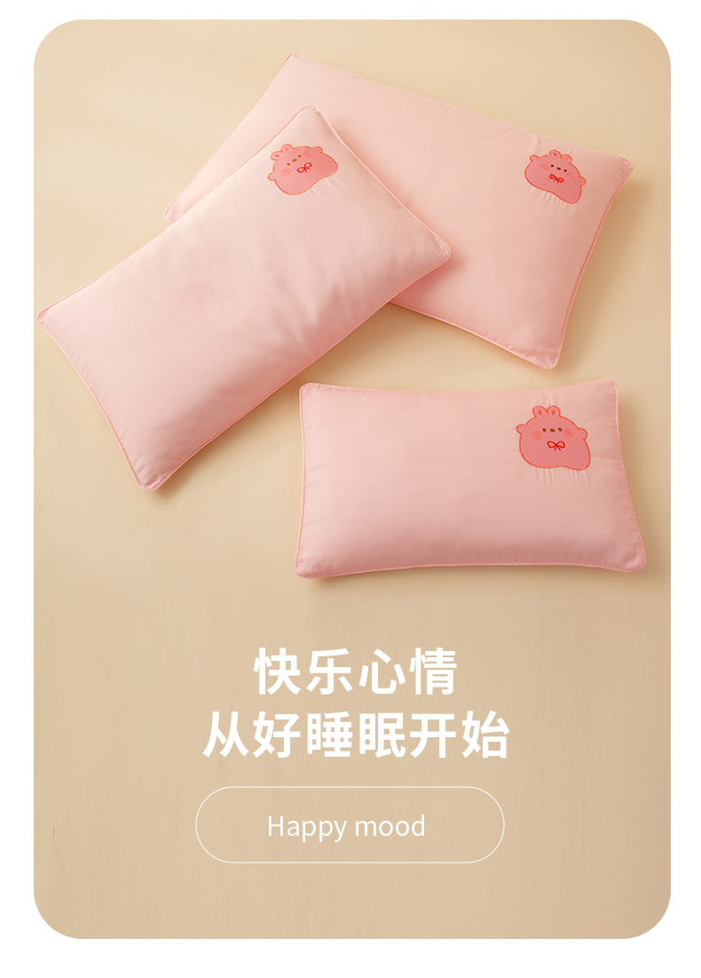 商品名称:喜多兔2025新款小轻柔纯棉双层纱枕套枕头 粉色Q小兔