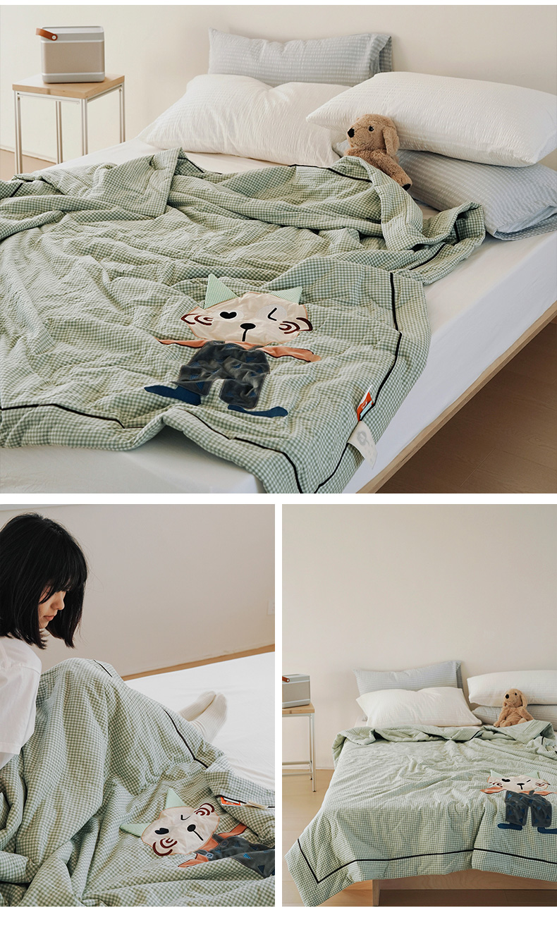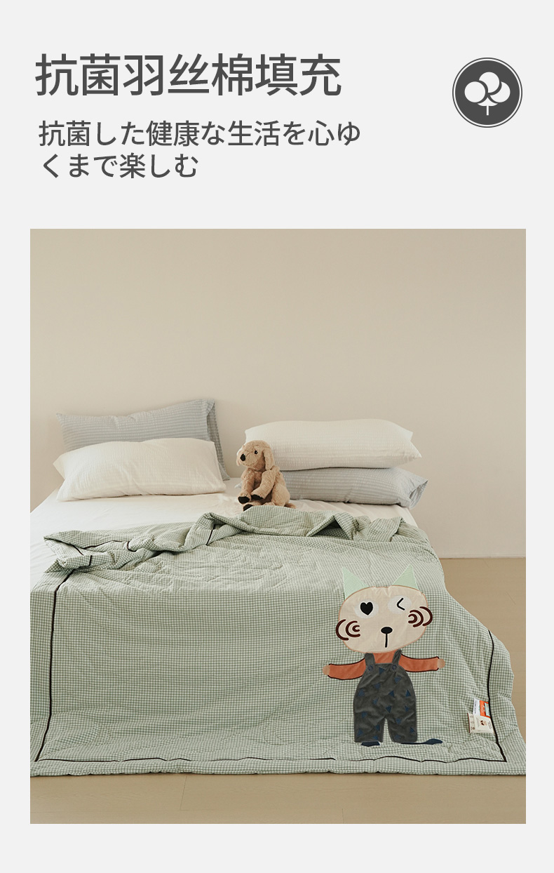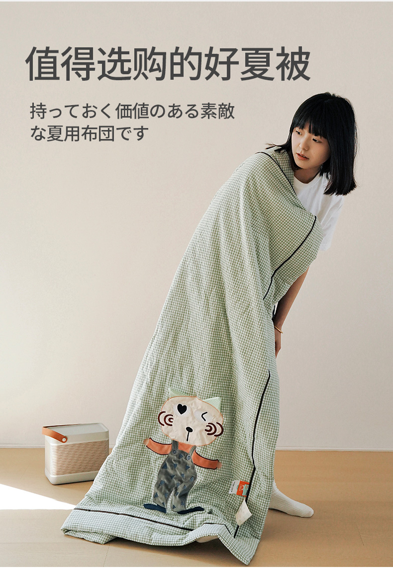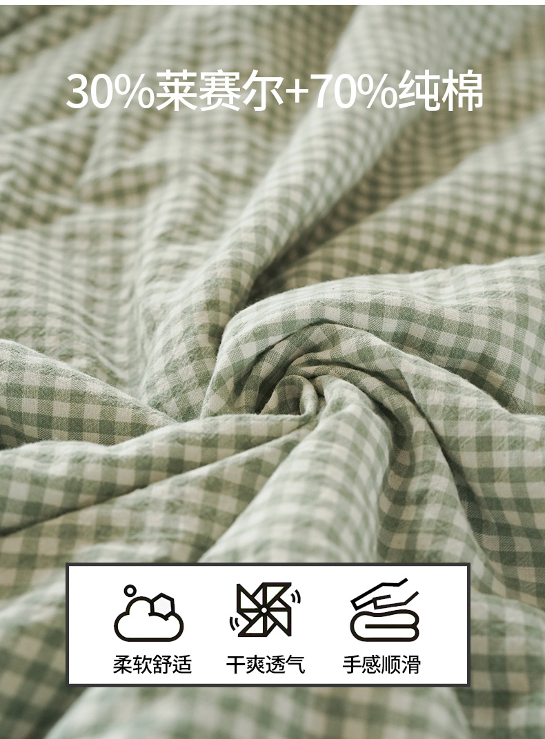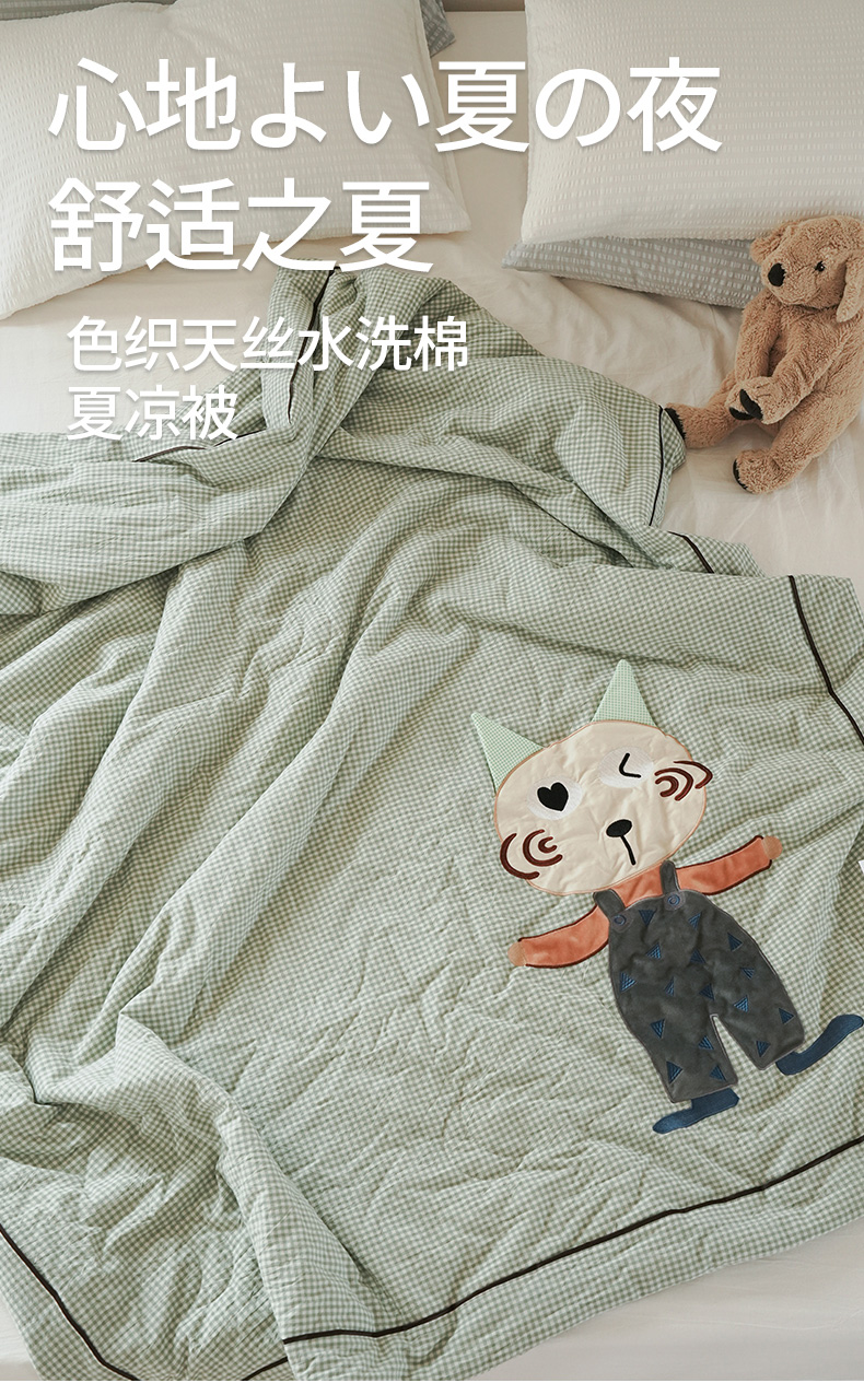 • 91家纺网 家纺一手货源 找家纺 喜多兔儿童家纺 2025新款色织天丝水洗棉夏被被子被芯 绿格星星小怪兽-胶片风