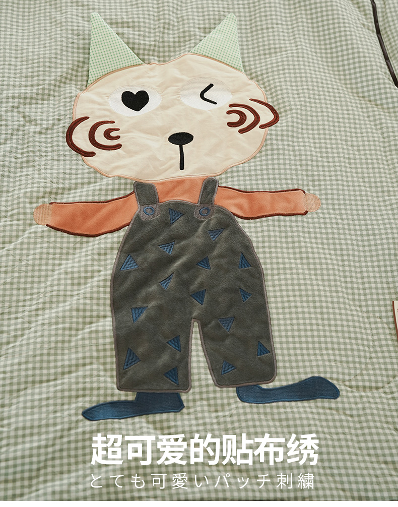 (总)喜多兔儿童家纺 2025春夏新款小软萌贴布绣纱布被,粉色软萌小兔,卡其色软萌小熊,蓝色软萌小象,绿色软萌恐龙,组合图仅供展示