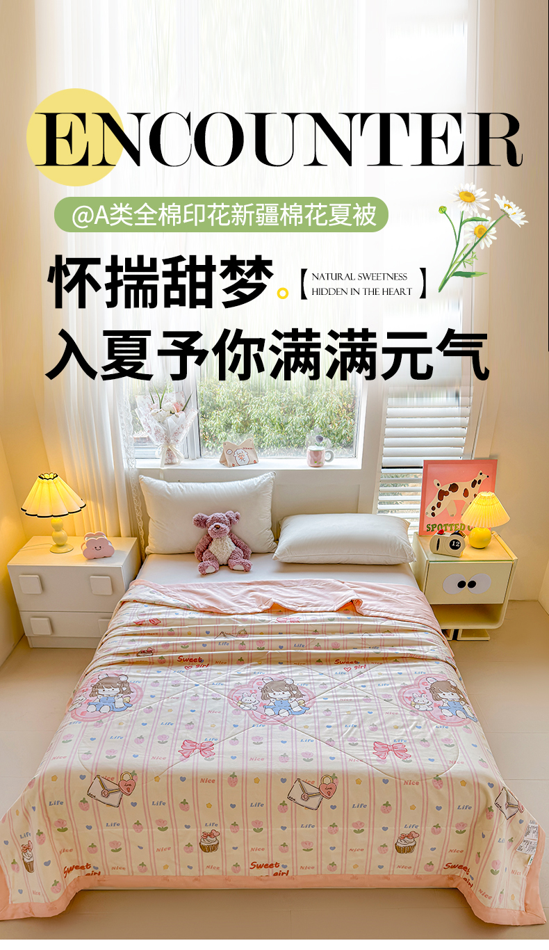 (总)小石头家纺 2025新款A类小清新纯棉印花夏被,绿蔓,碎花细雨,半亩花田,粉黛佳人,可爱熊猫,蓝花楹,青柠薄荷,悠然夏日,艾薇尔,碧叶粉黛,草莓粉兔,花间集-米,花涧艺-咖,简雅芬芳-米,快乐时光,蓝调格韵,梦入芬芳,阳光花语,叶语菲菲,樱桃女孩