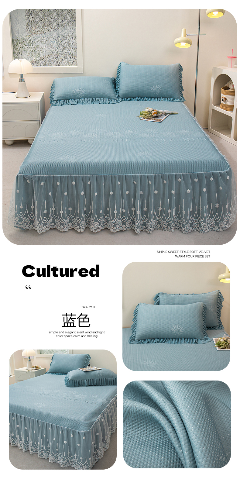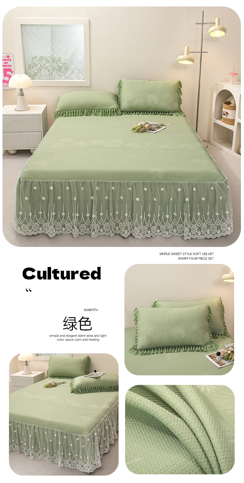 (总)美洲琳 2025新款650克凉豆豆凉席床裙三件套,湖蓝,浅灰,水绿,香槟,心粉