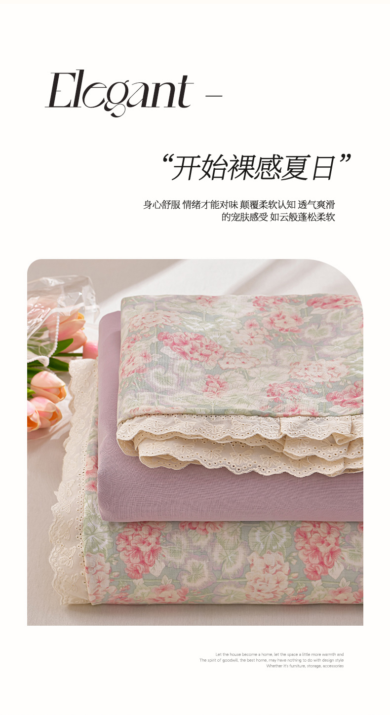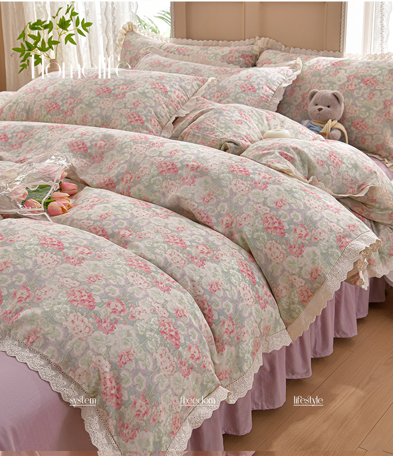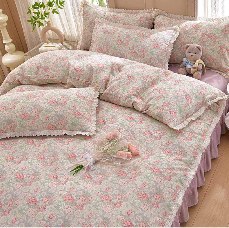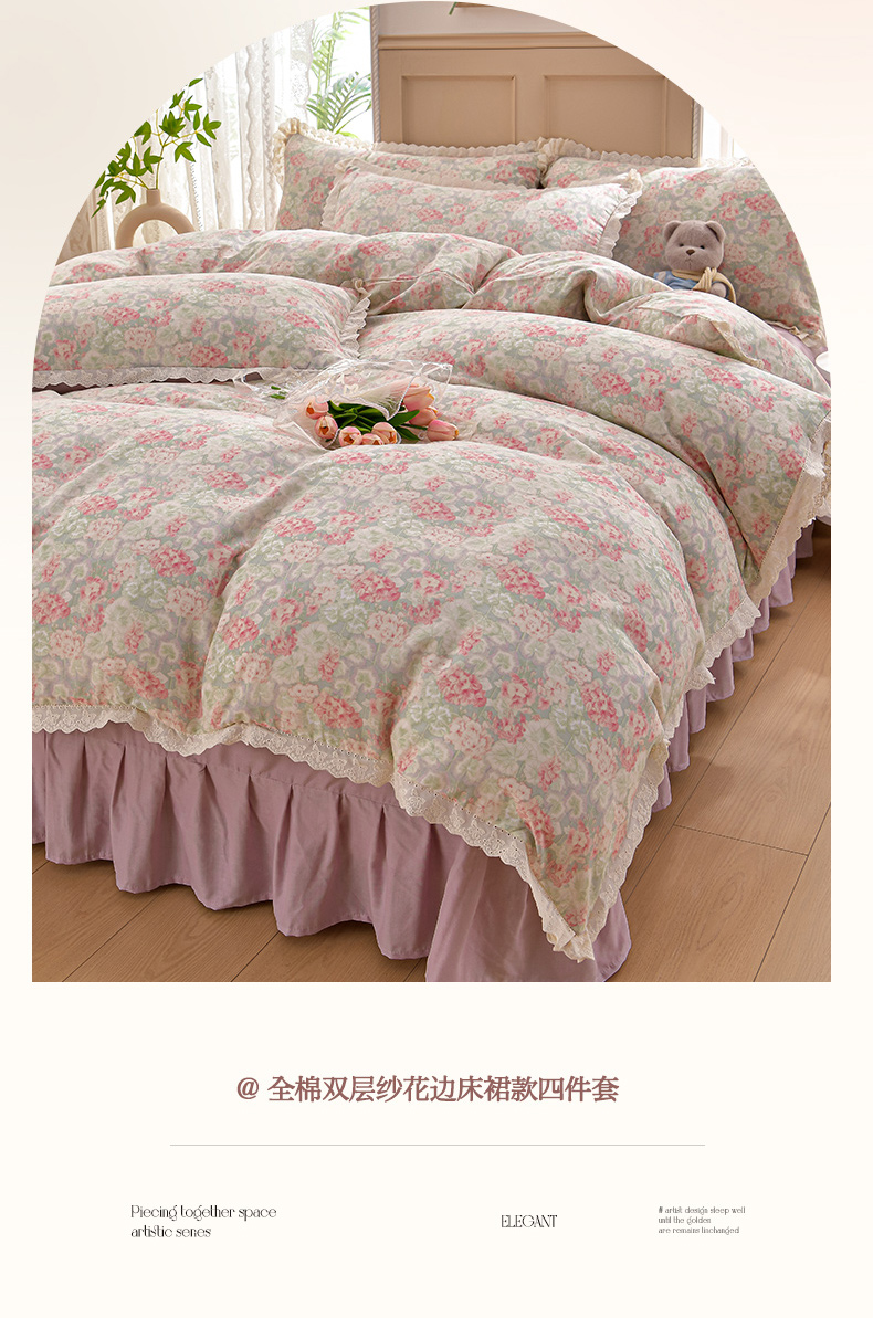 商品名称:绘萱家居 2025新款100%全棉双层纱花边床裙款四件套 CQ茉莉清雨