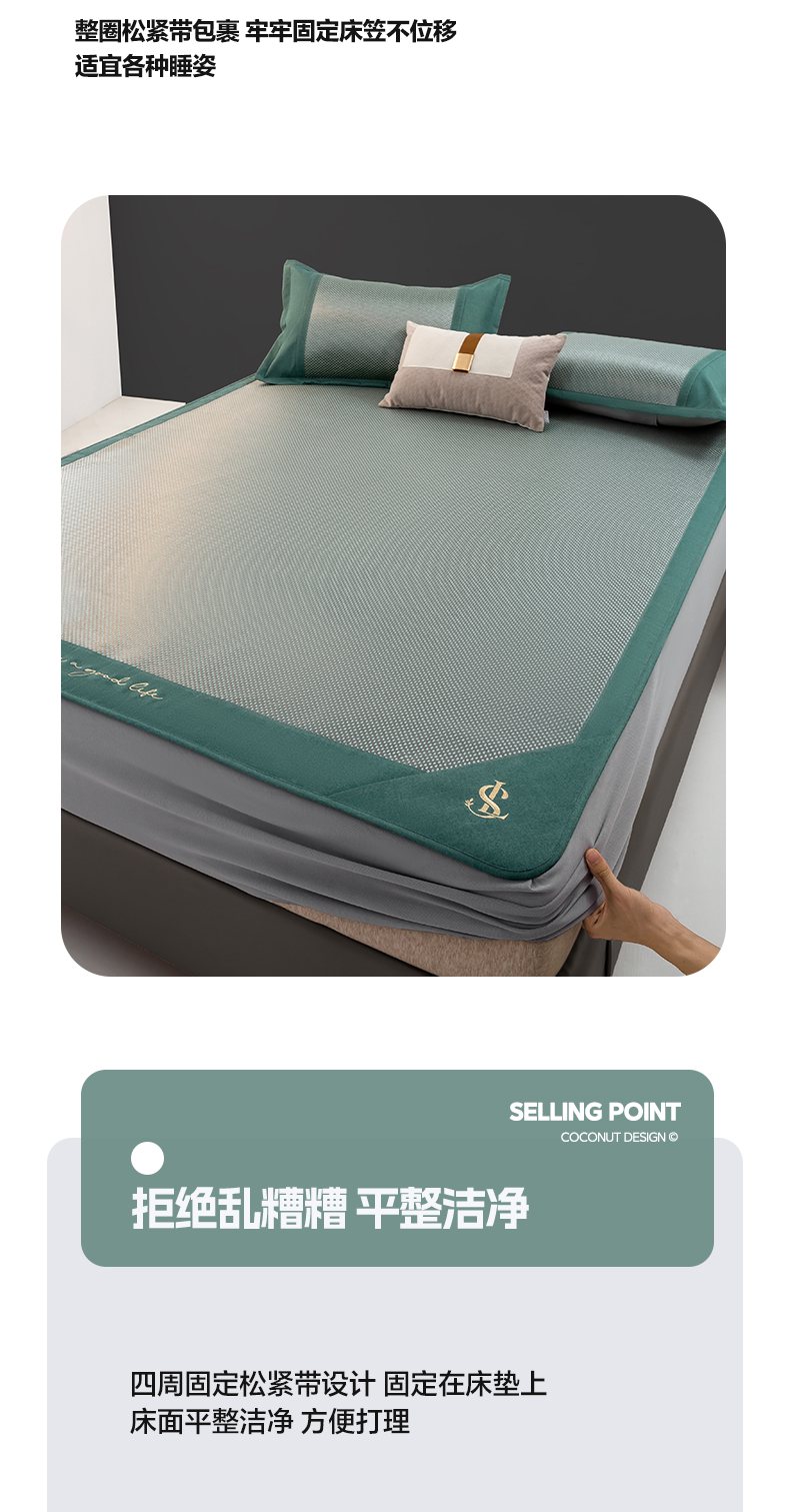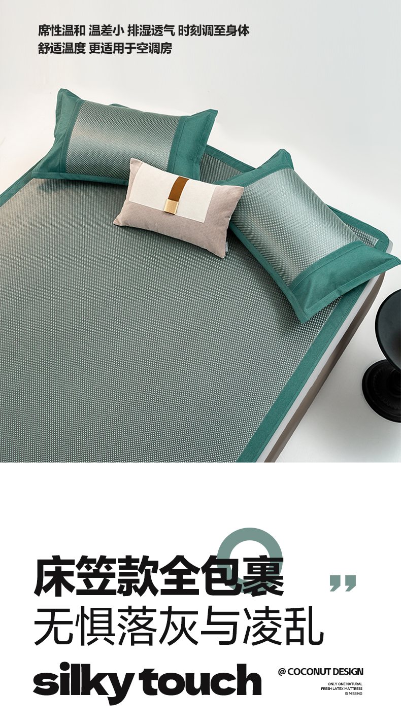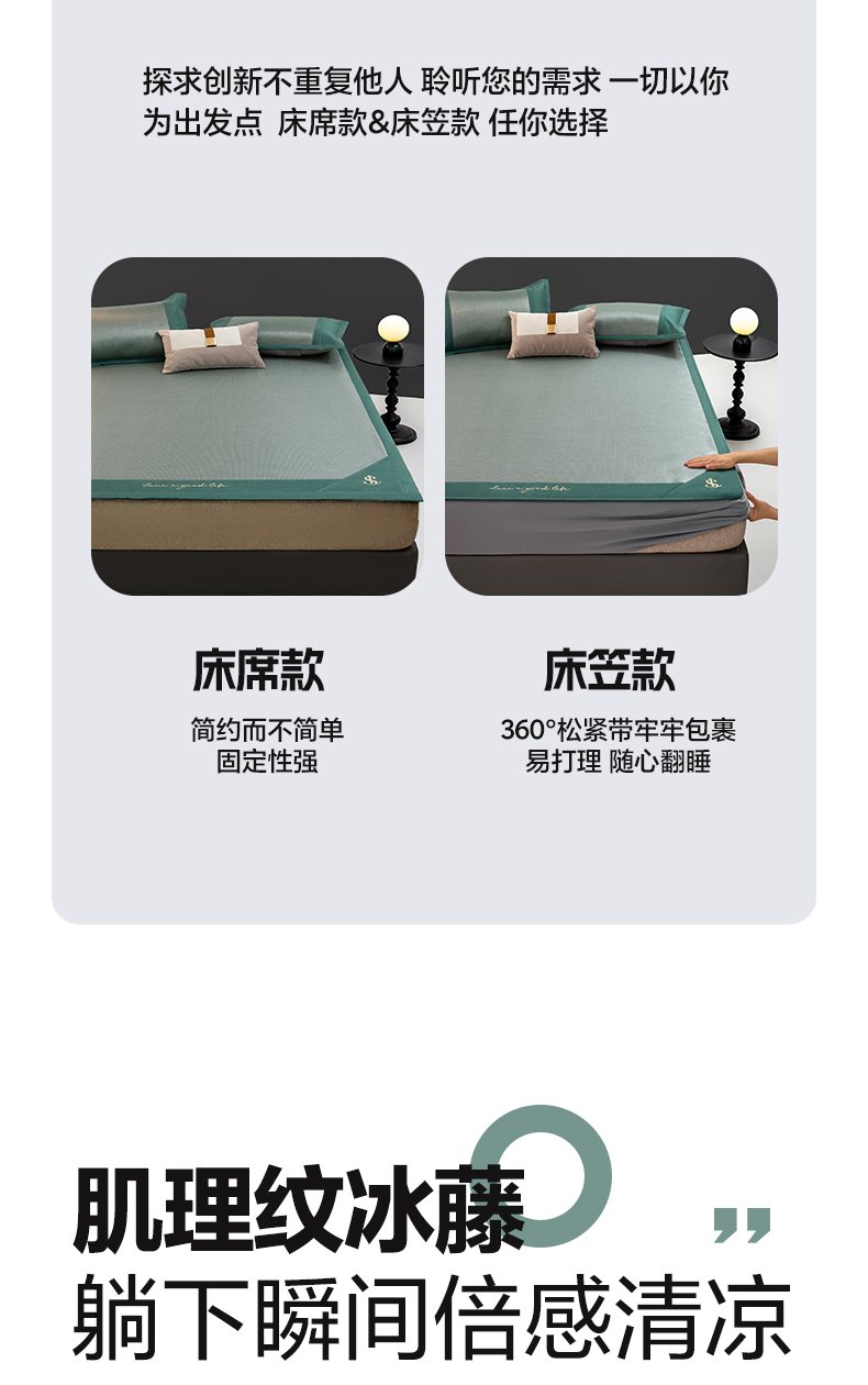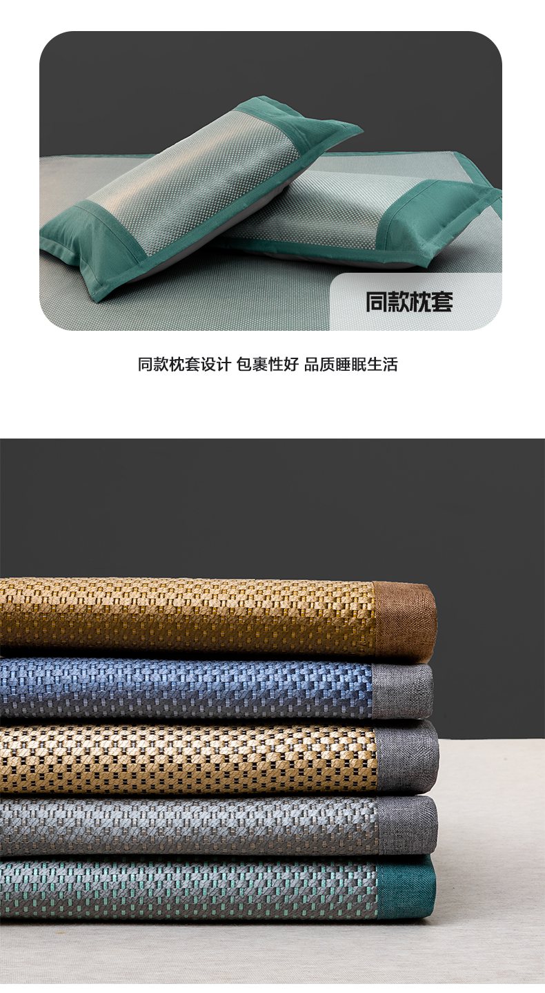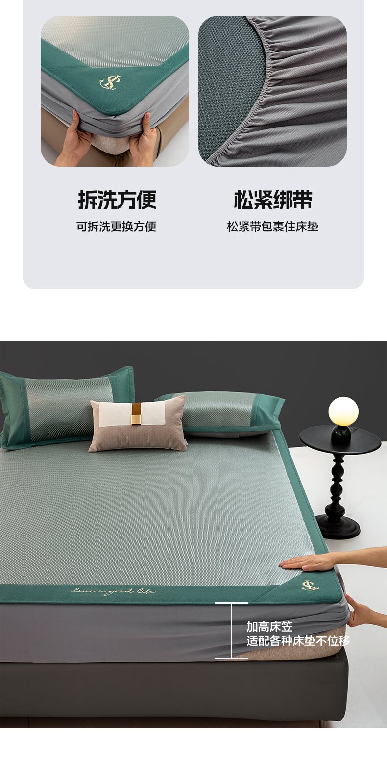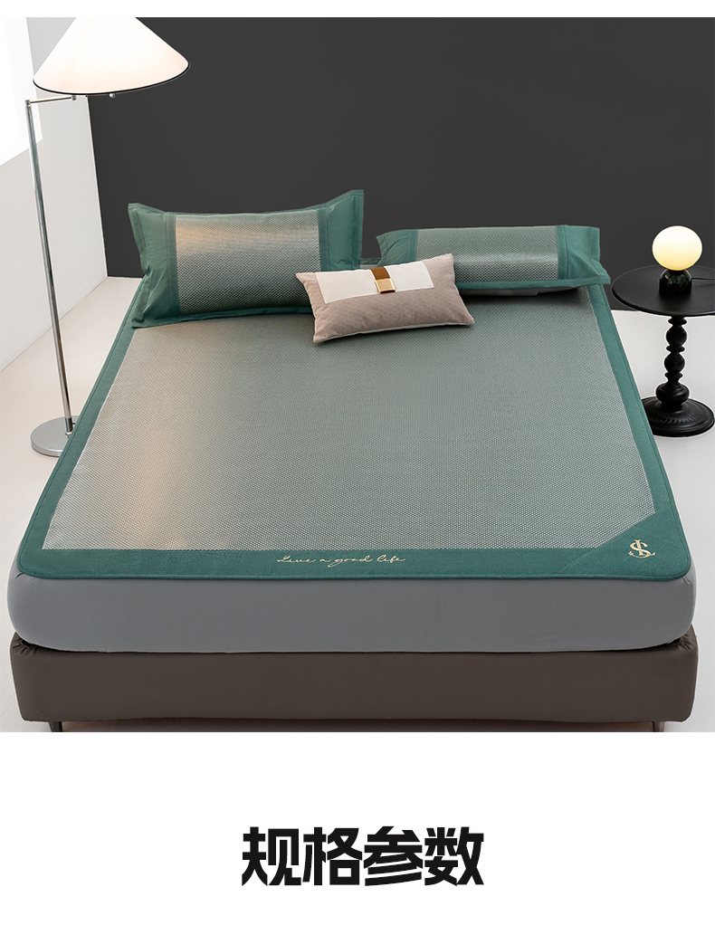 商品名称:宜家坊 2025新款A类纯色绣花冰藤席凉席三件套 松花绿-床笠款