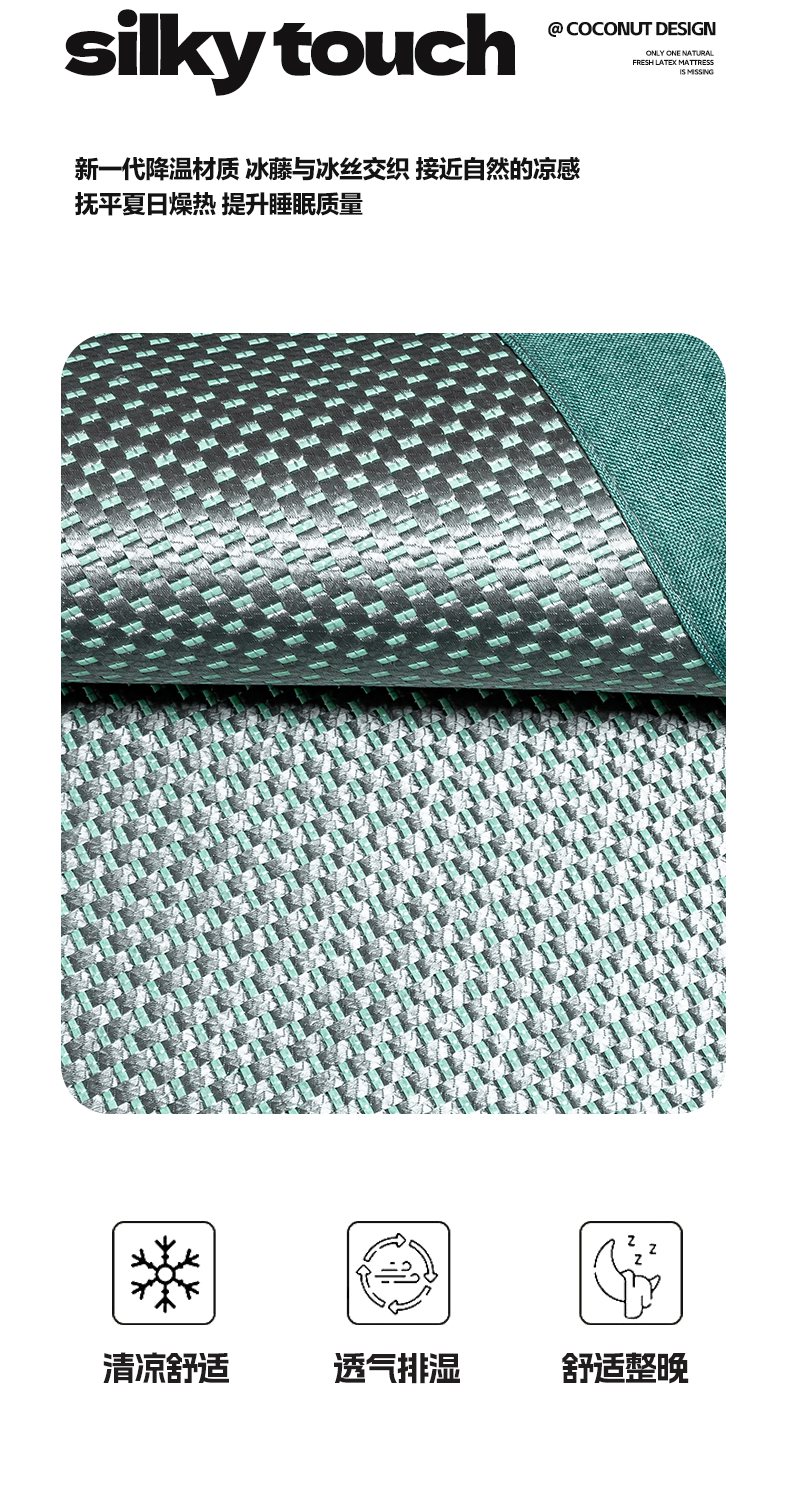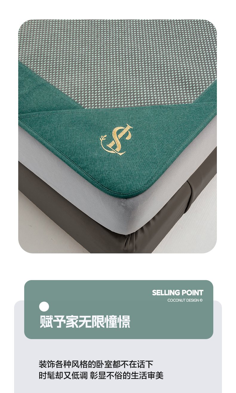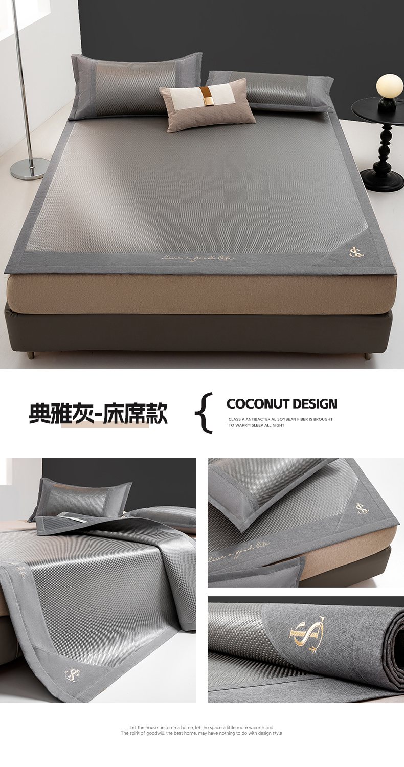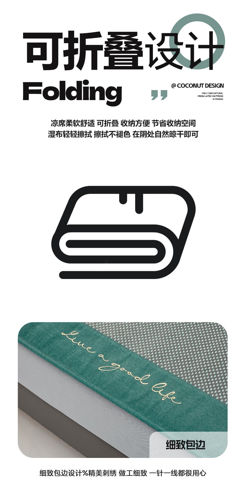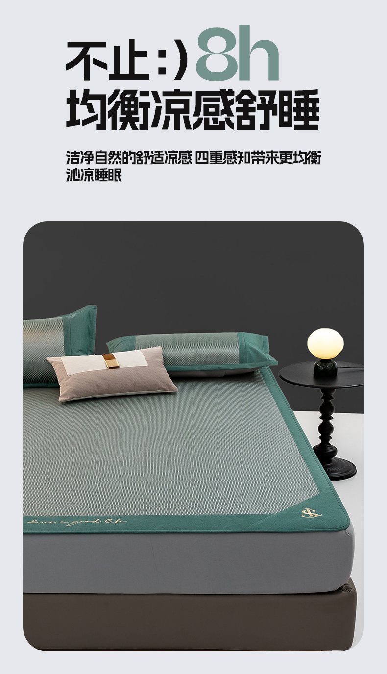 商品名称:宜家坊 2025新款A类纯色绣花冰藤席凉席三件套 松花绿-床笠款