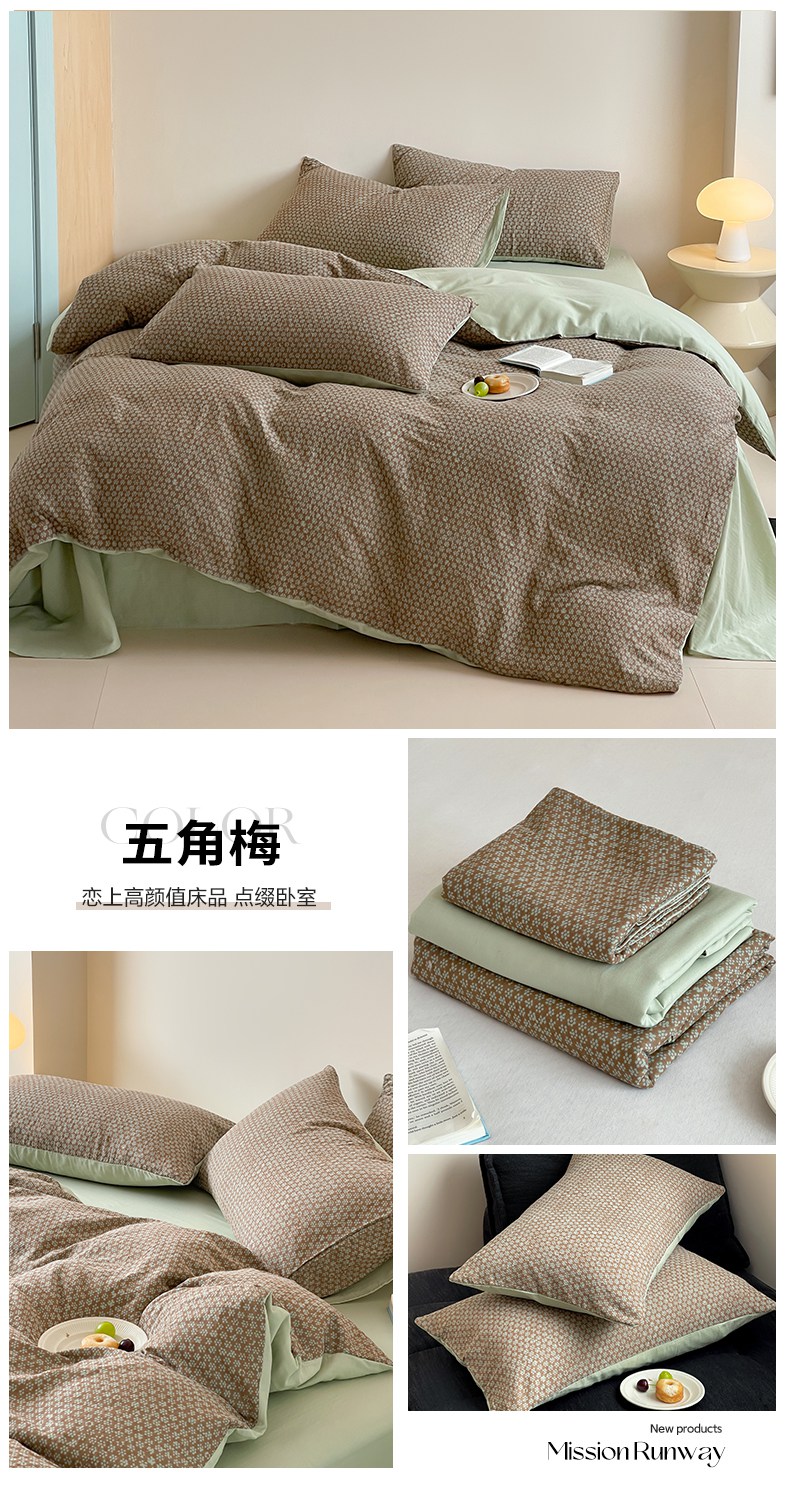 2021A类全棉双层纱四件套纯棉三件套【小爱心】,小爱心