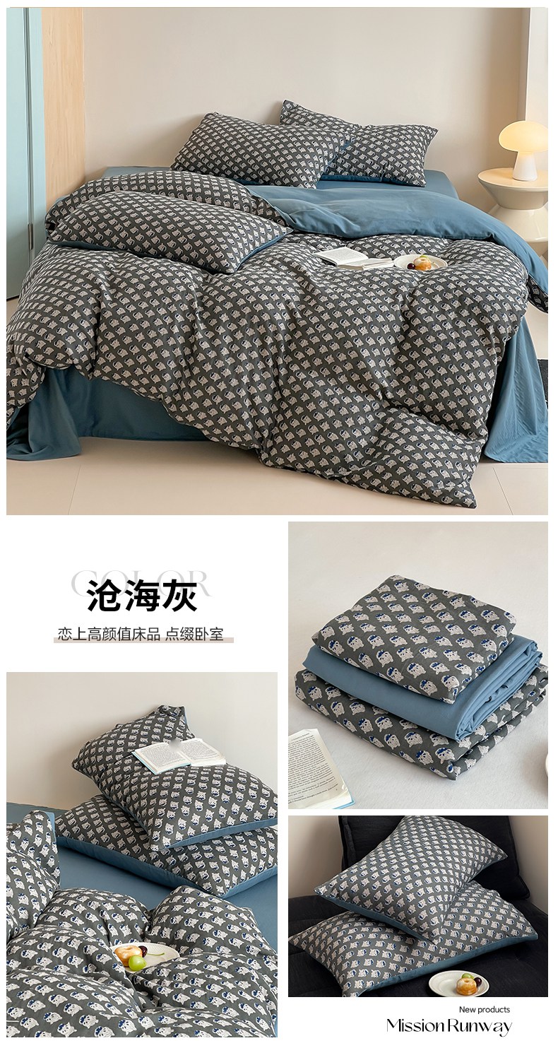 (总)萝莉家纺 2025新款全棉小清新高品质数码印花磨毛四件套,斑点狗狗,波点草莓,多彩草莓,美味蛋糕,甜品熊,涂鸦日记,熊熊日记,英伦熊,樱桃多多,组合