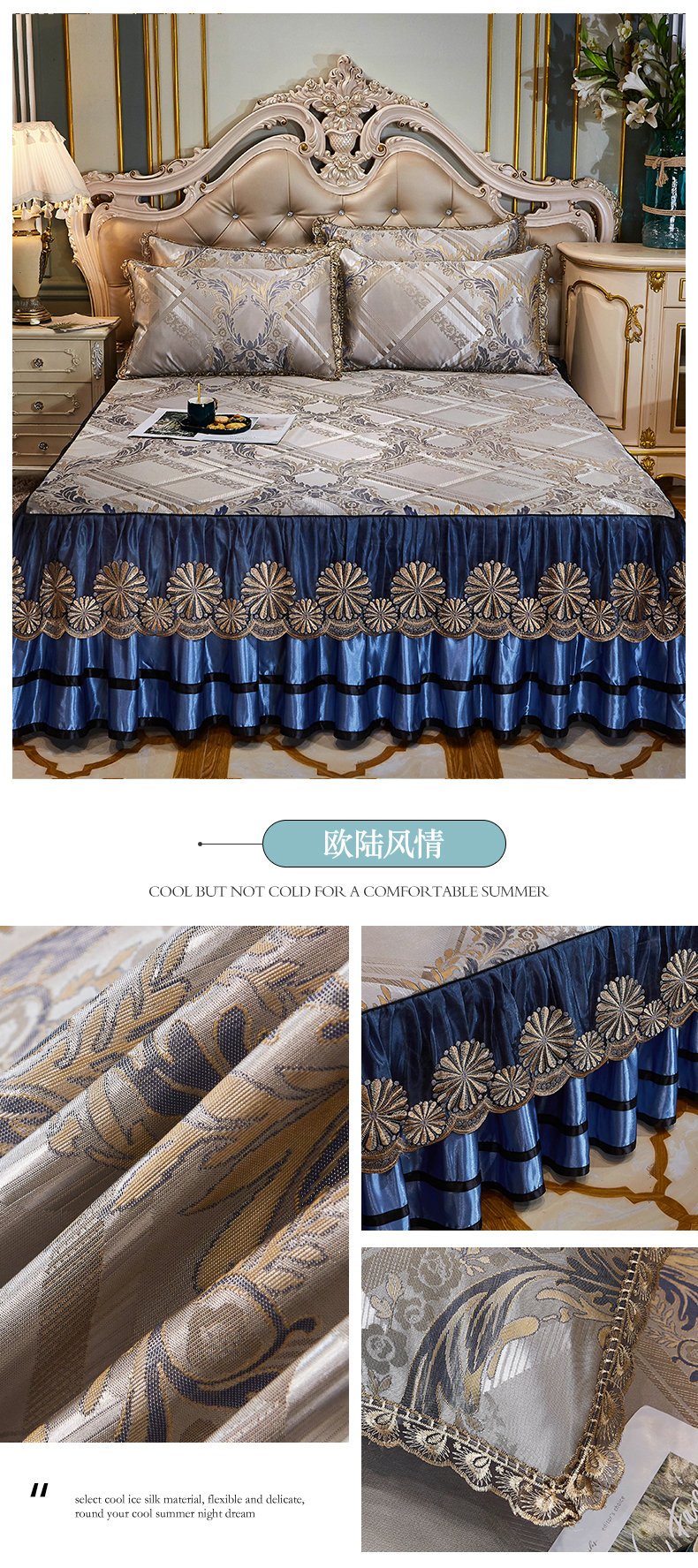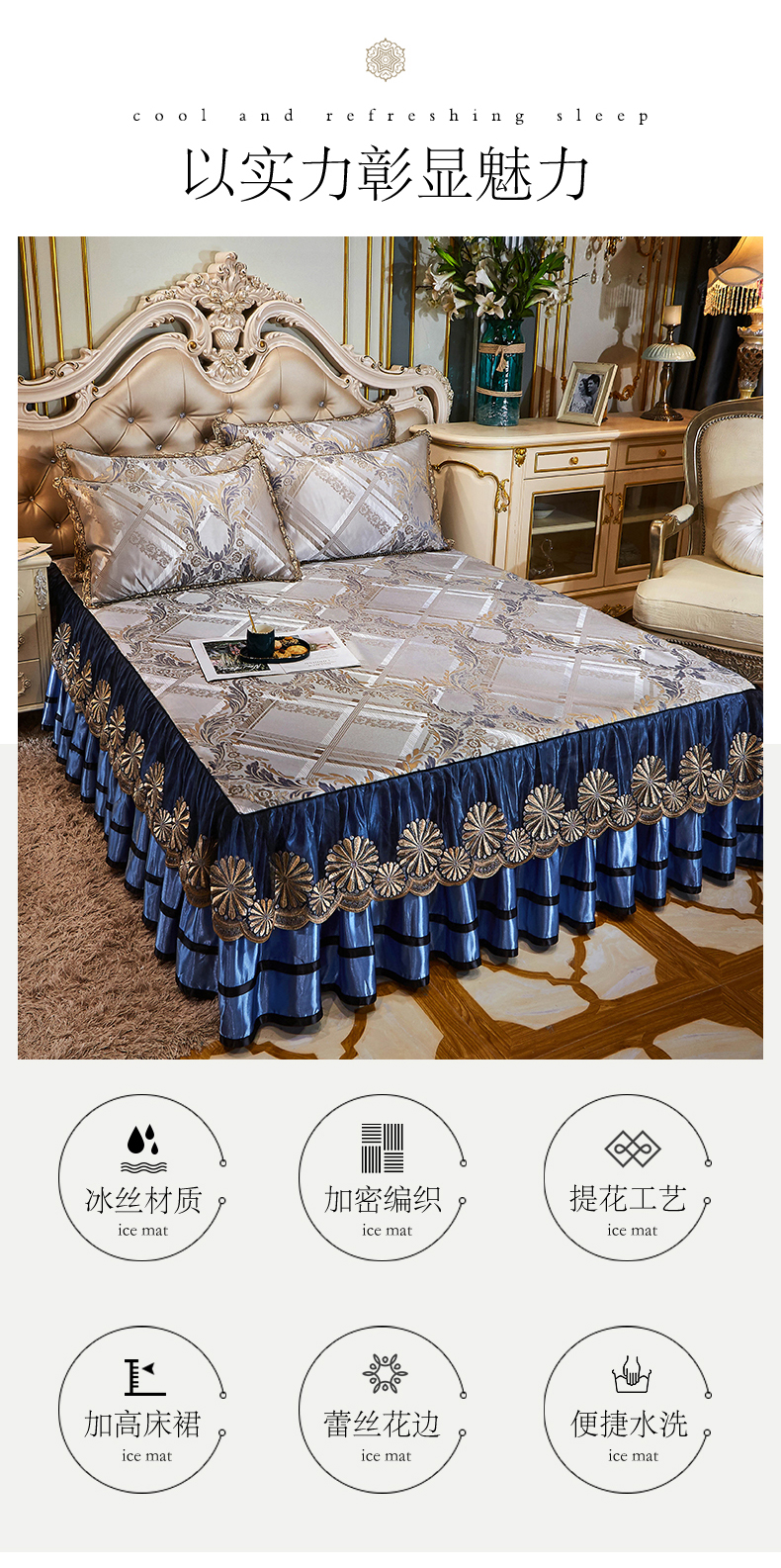 商品名称:网红馆(ck家纺) 2025新款色织提花冰丝凉席床裙款 欧陆风情