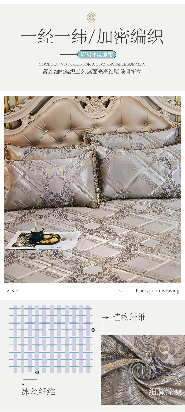 网红馆(ck家纺) 2025新款色织提花冰丝凉席床裙款 欧陆风情